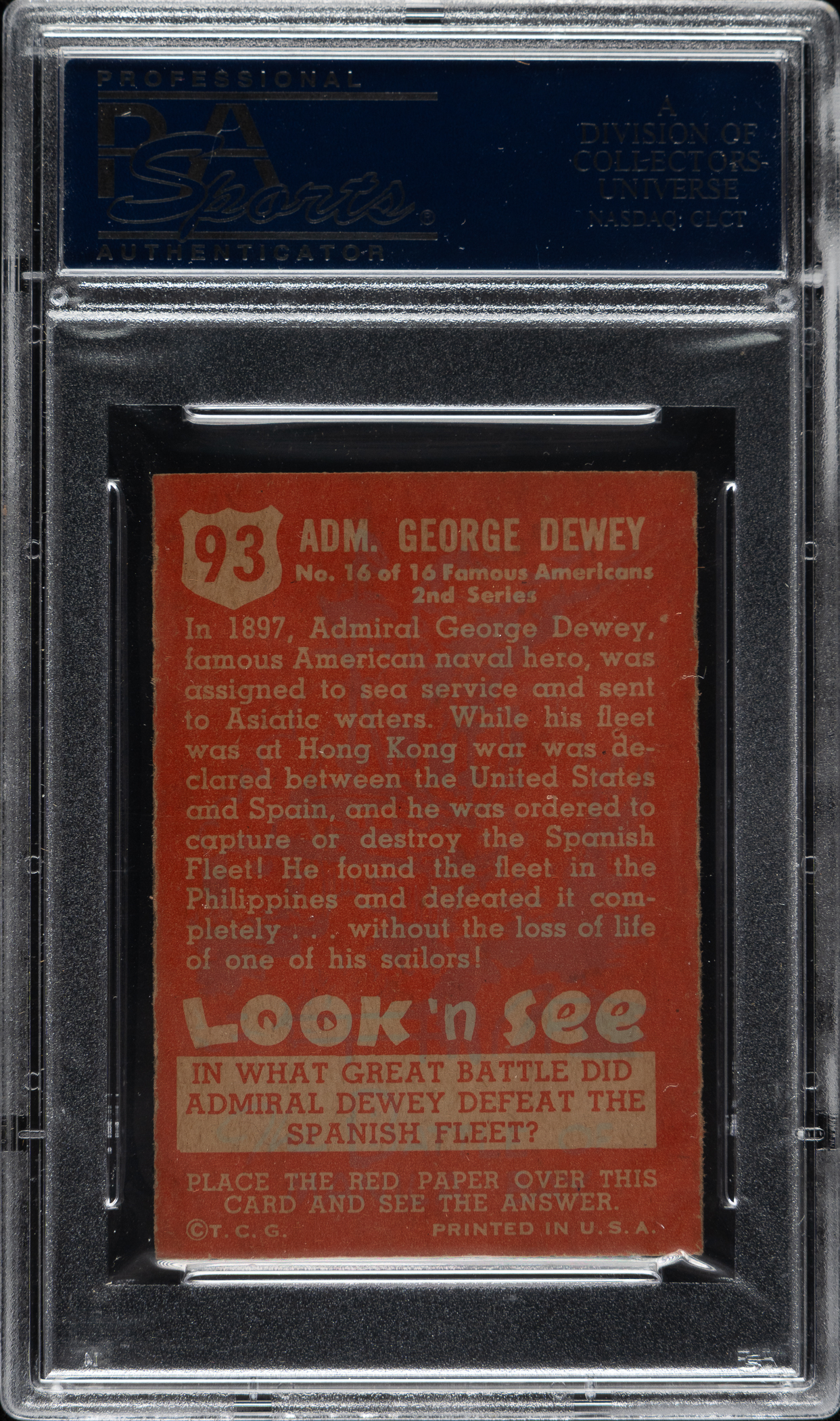 Lot # 2850: 1952 Topps "Look 'n See" #93 Admiral George Dewey PSA NM-MT 8