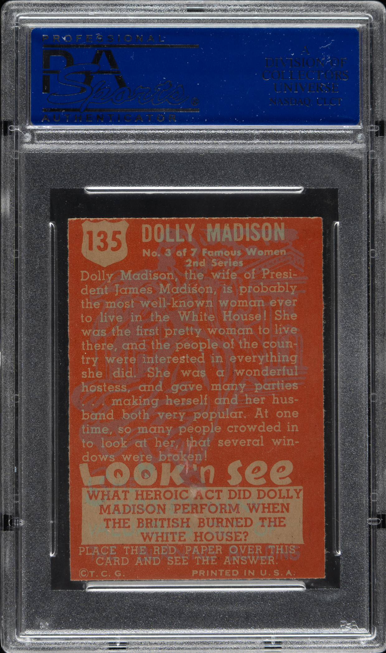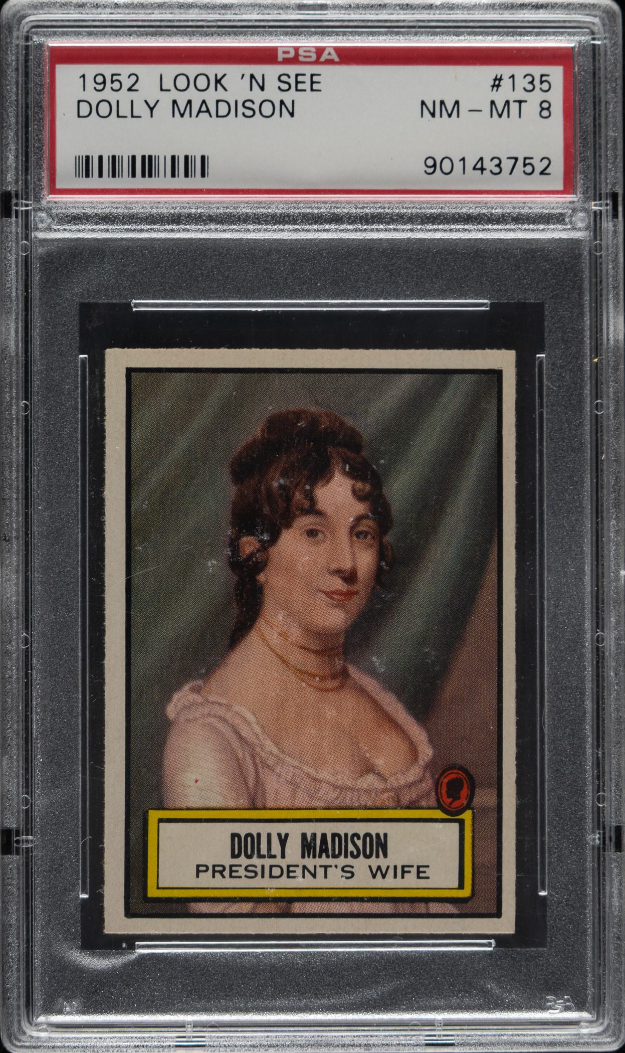 Lot # 2855: 1952 Topps "Look 'n See" #135 Dolly Madison PSA NM-MT 8