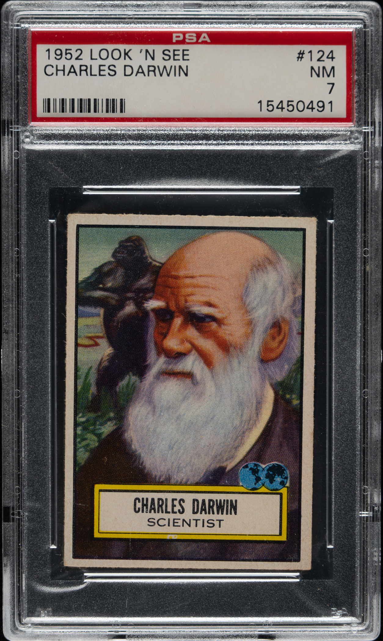Lot # 3381: 1952 Topps "Look 'n See" #124 Charles Darwin PSA NM 7
