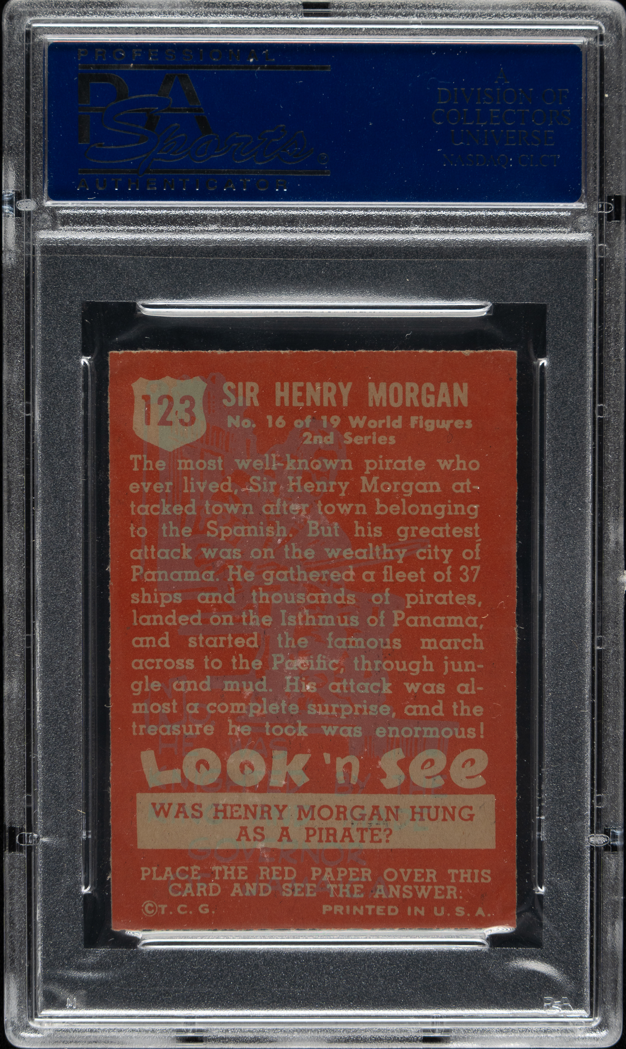 Lot # 3380: 1952 Topps "Look 'n See" #123 Sir Henry Morgan PSA NM-MT 8