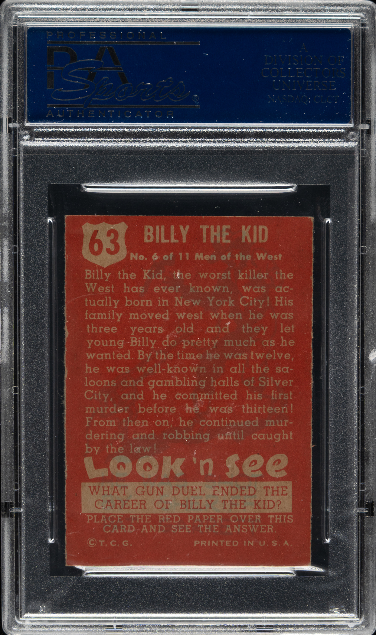 Lot # 3426: 1952 Topps "Look 'n See" #63 Billy the Kid PSA NM-MT 8