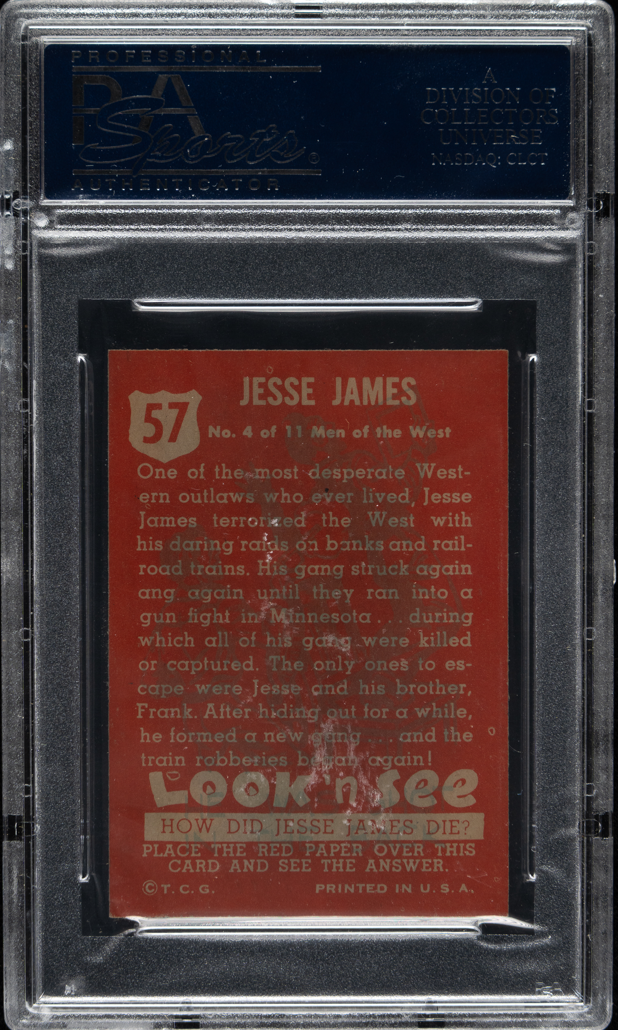 Lot # 3420: 1952 Topps "Look 'n See" #57 Jesse James PSA NM-MT 8