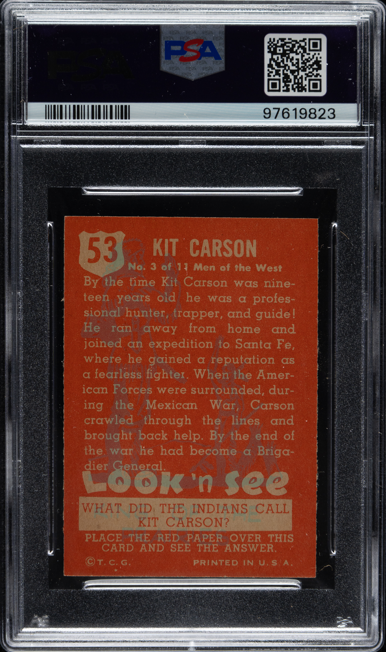 Lot # 3416: 1952 Topps "Look 'n See" #53 Kit Carson PSA NM-MT 8