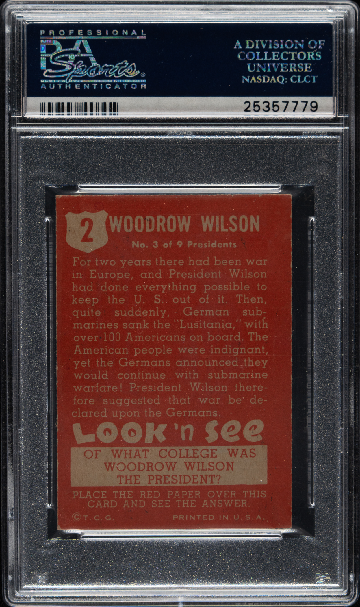 Lot # 3392: 1952 Topps "Look 'n See" #2 Woodrow Wilson PSA NM-MT 8