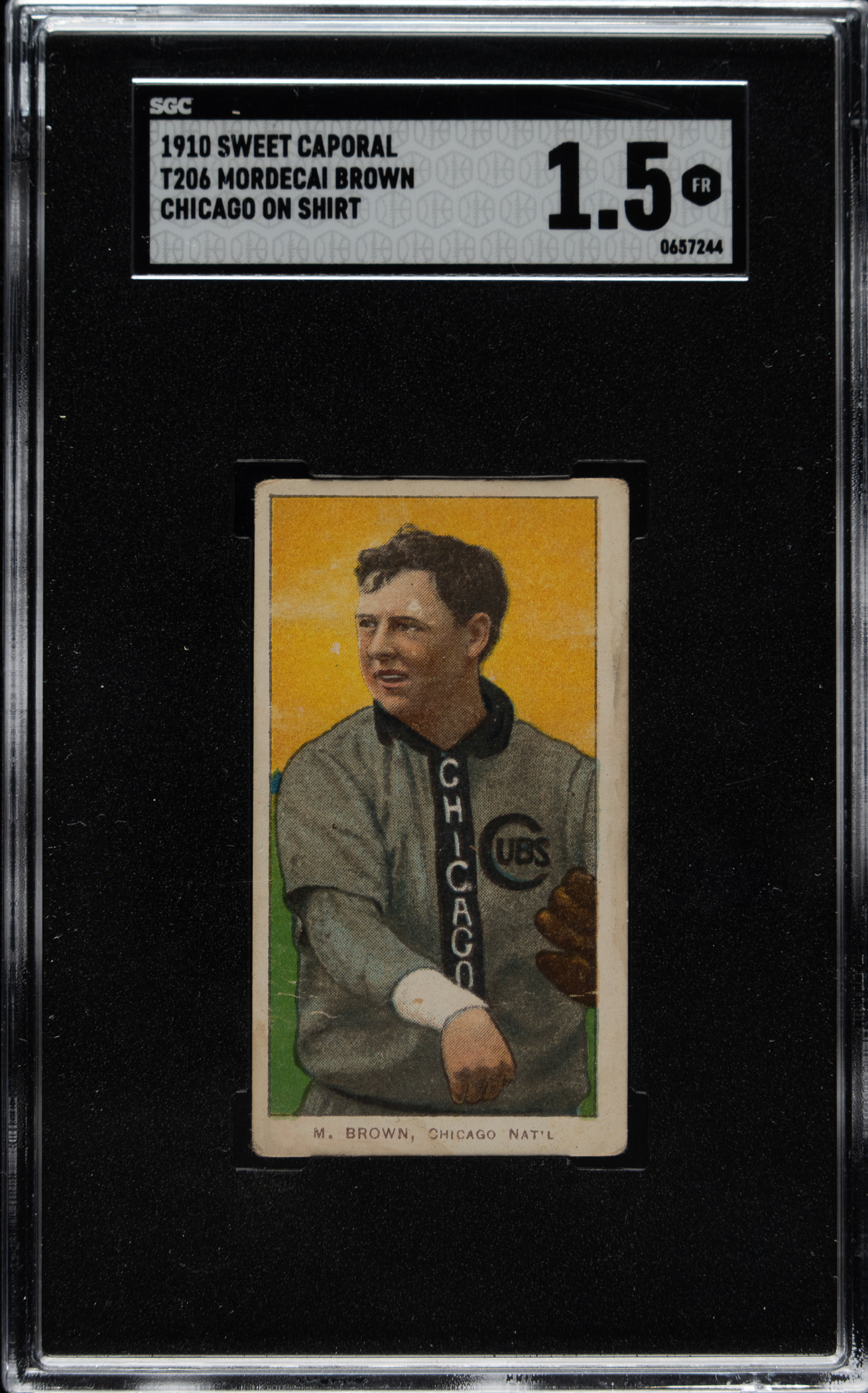 Graded FAIR 1.5 by SGC. Chicago Cubs Hall of Famer Mordecai Brown.