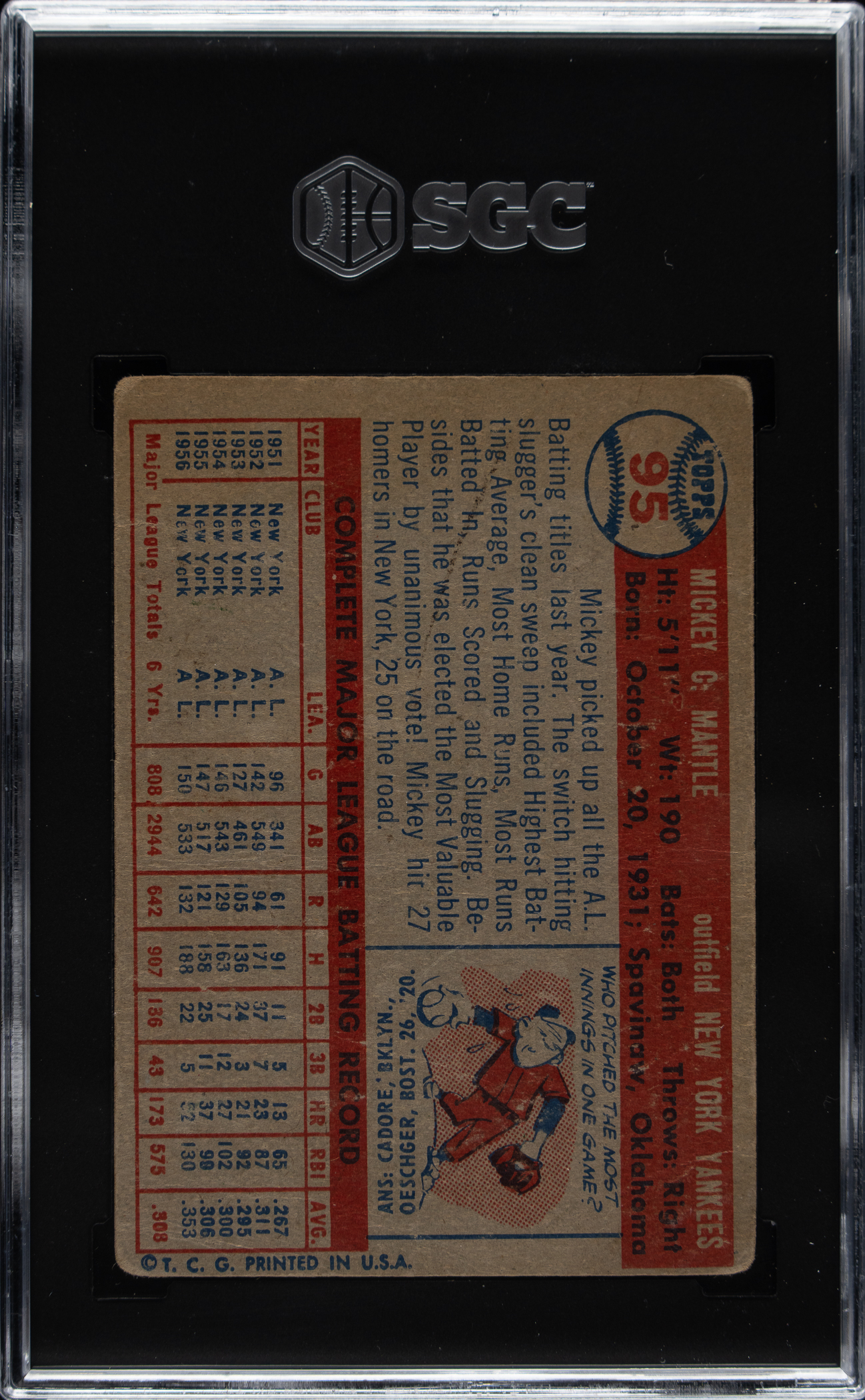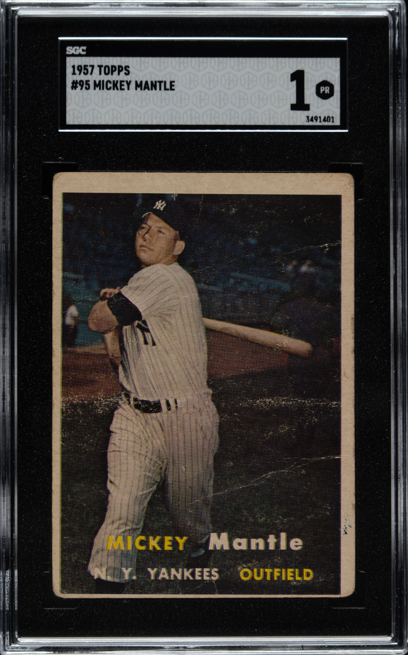 Graded POOR 1 by SGC. New York Yankees Hall of Famer Mickey Mantle.