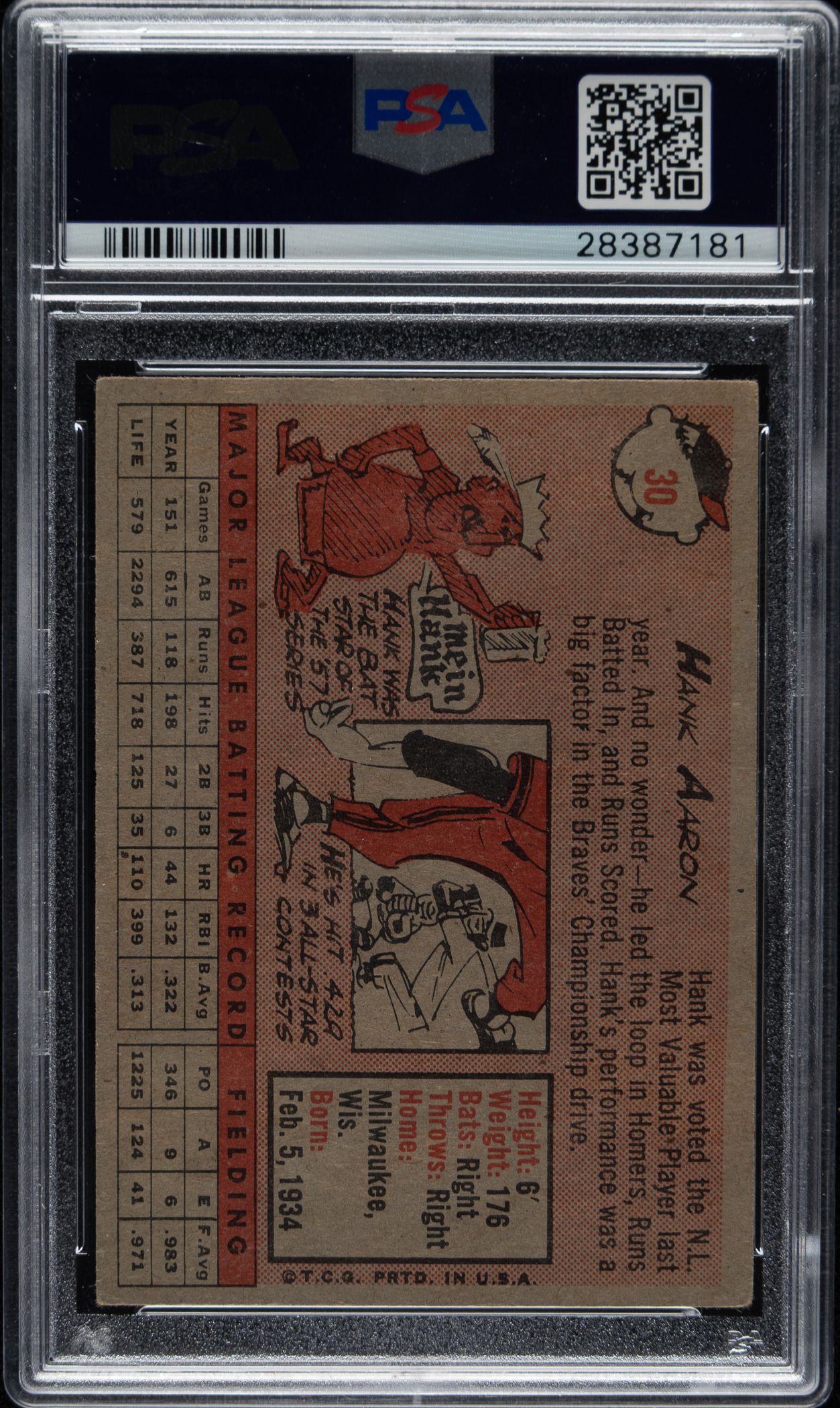 Lot # 1741: 1958 Topps #30 Hank Aaron PSA VG-EX 4