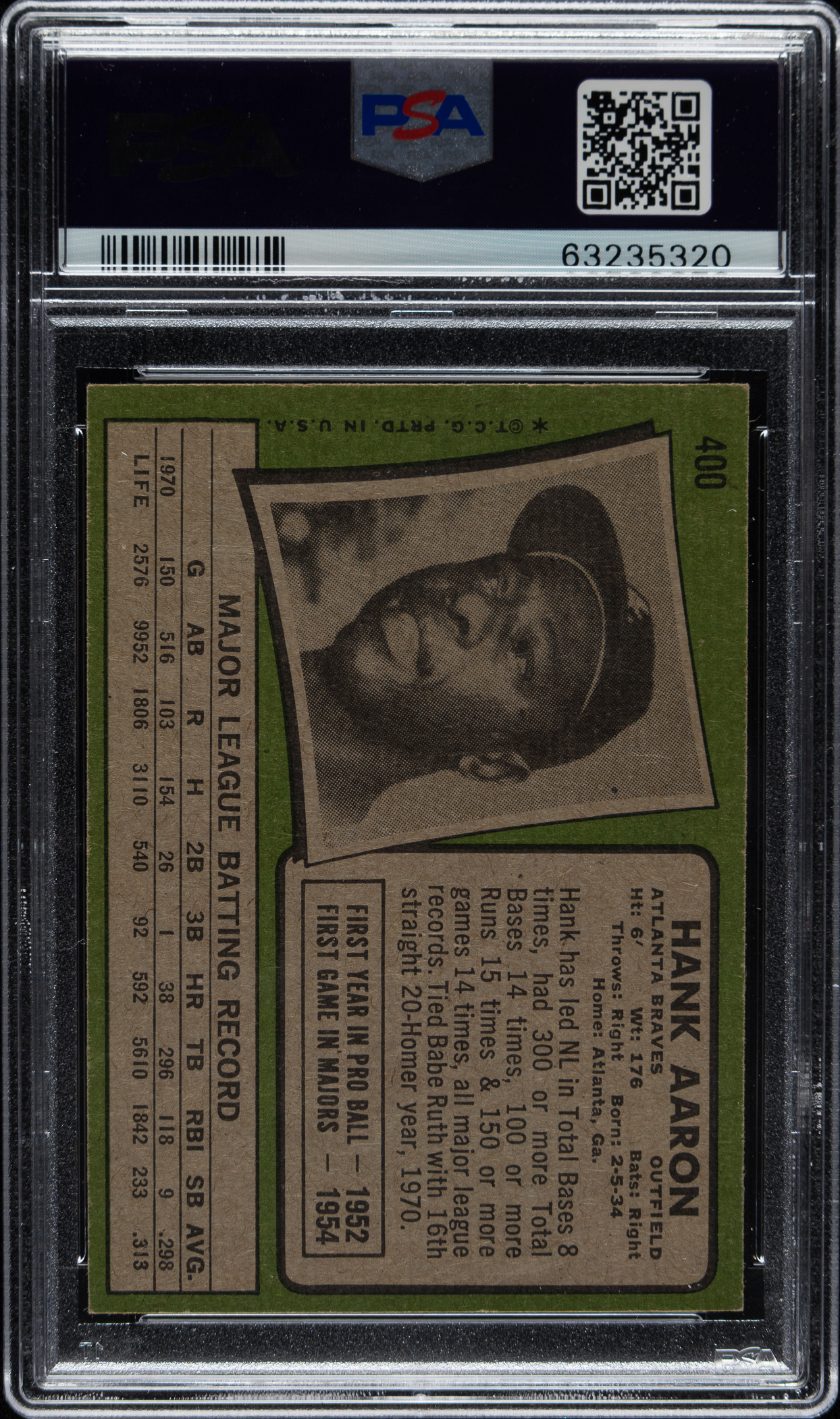 Graded EX 5 by PSA. Atlanta Braves Hall of Famer Hank Aaron.