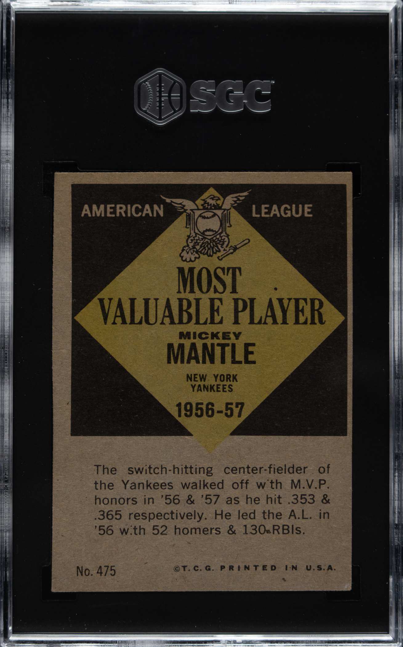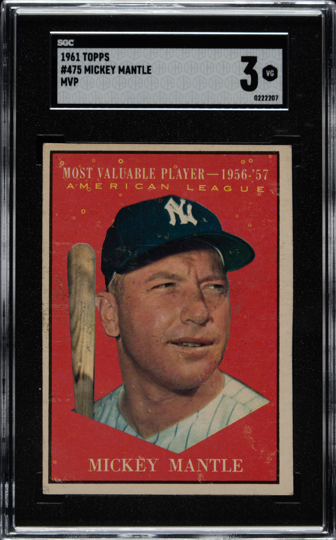 Lot # 1886: 1961 Topps #475 Mickey Mantle MVP SGC VG 3