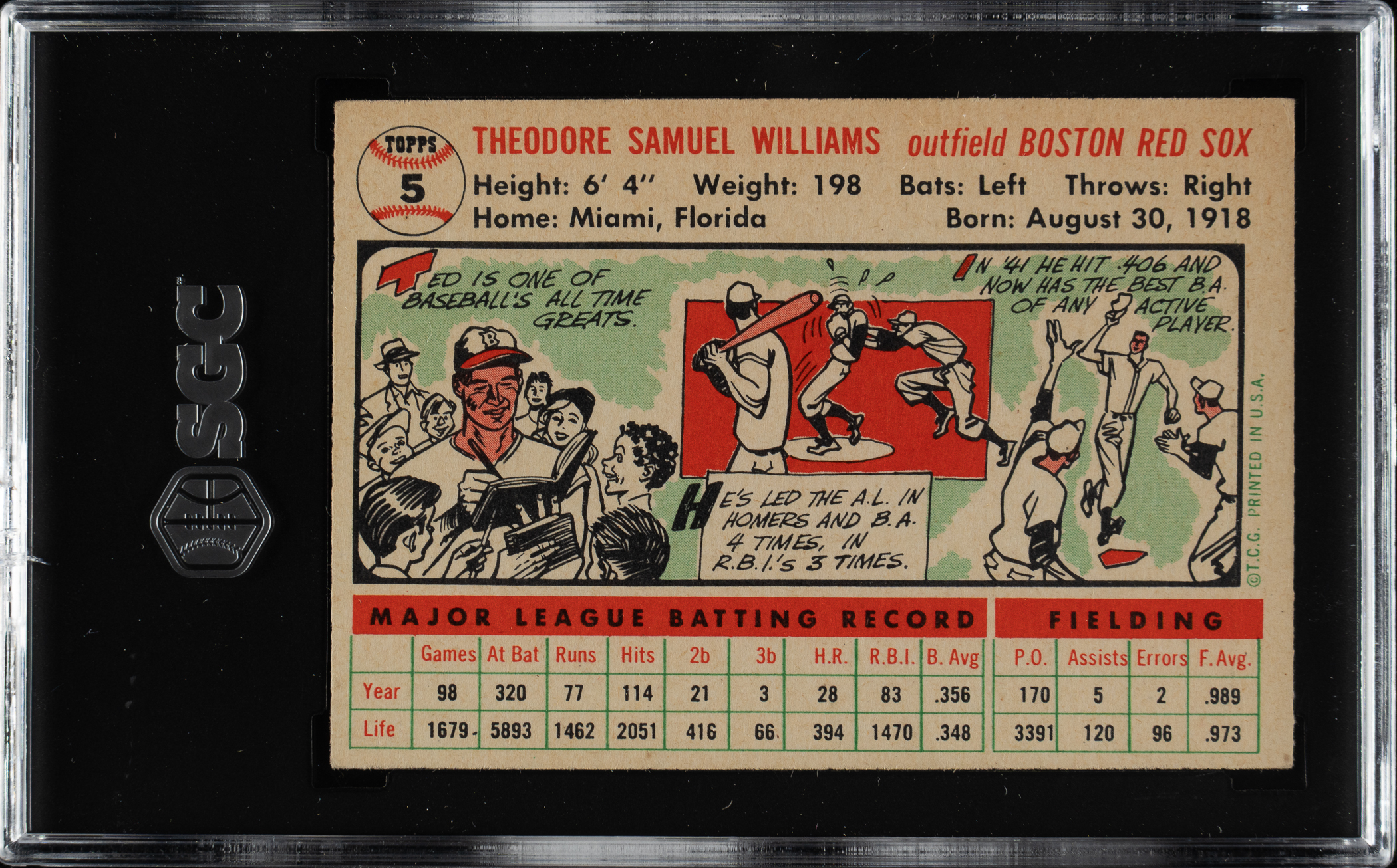 Graded VG/EX 4 by SGC. Boston Red Sox Hall of Famer Ted Williams.
