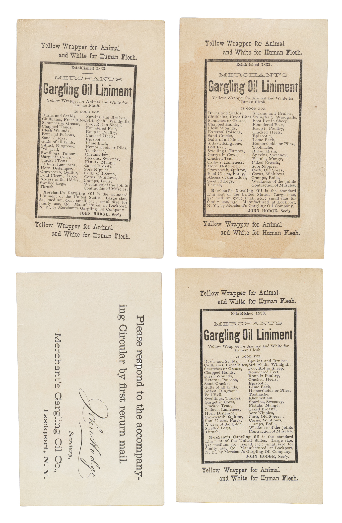 Collection of four 1880s H804-7 "Merchant's Gargling Oil Series" cards. This collection consists of the following: A Close Affair (Vg), Bravo! The Pet of the Nine (Vg+), Something Must be Done (Vg), and The Hero of a Home Run (Fr-Gd). Total: 4 cards.