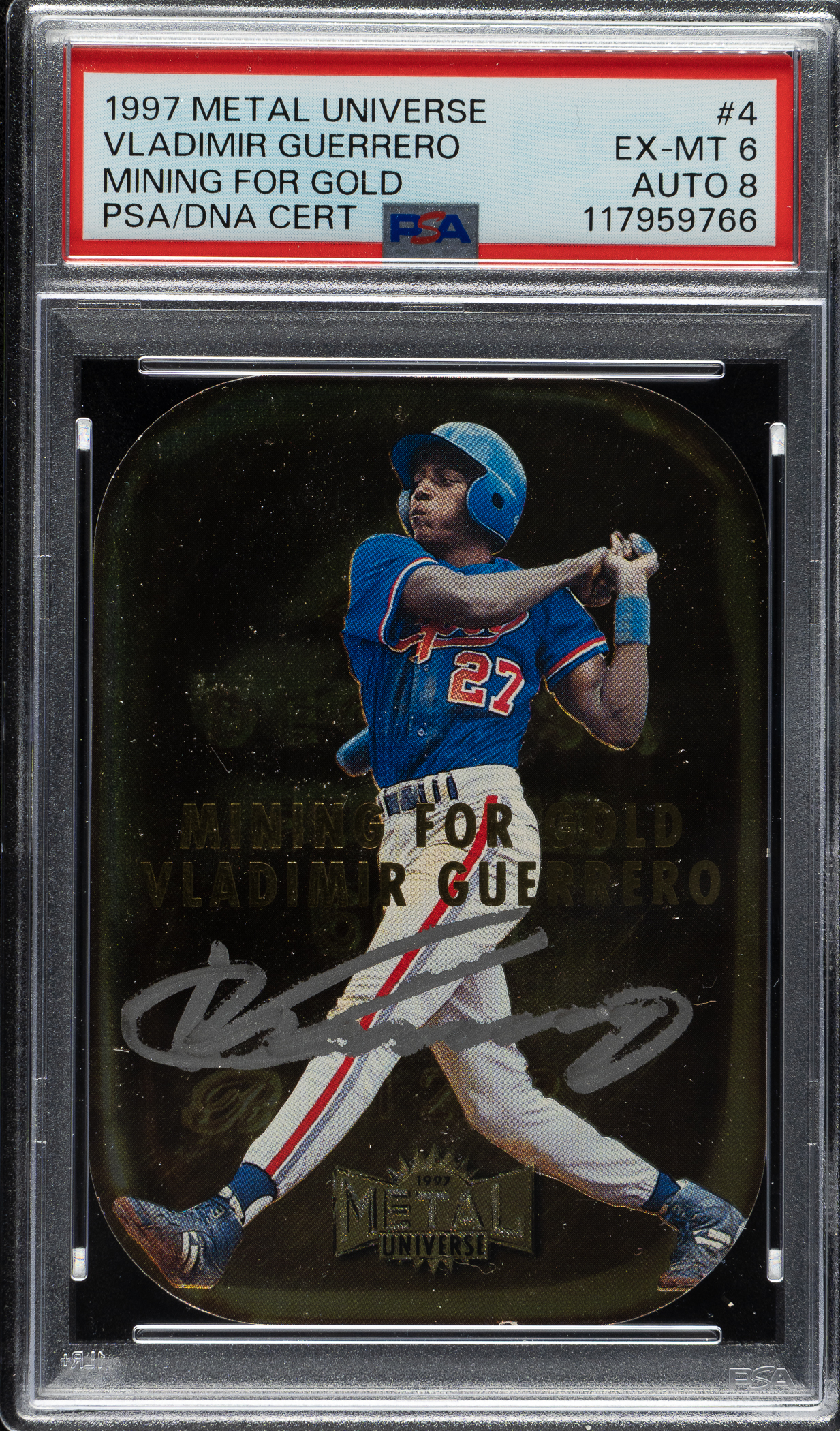 PSA/DNA has encapsulated the card, grading the signature NM-MT 8 and the card EX-MT 6. Montreal Expos Hall of Famer Vladimir Guerrero.