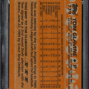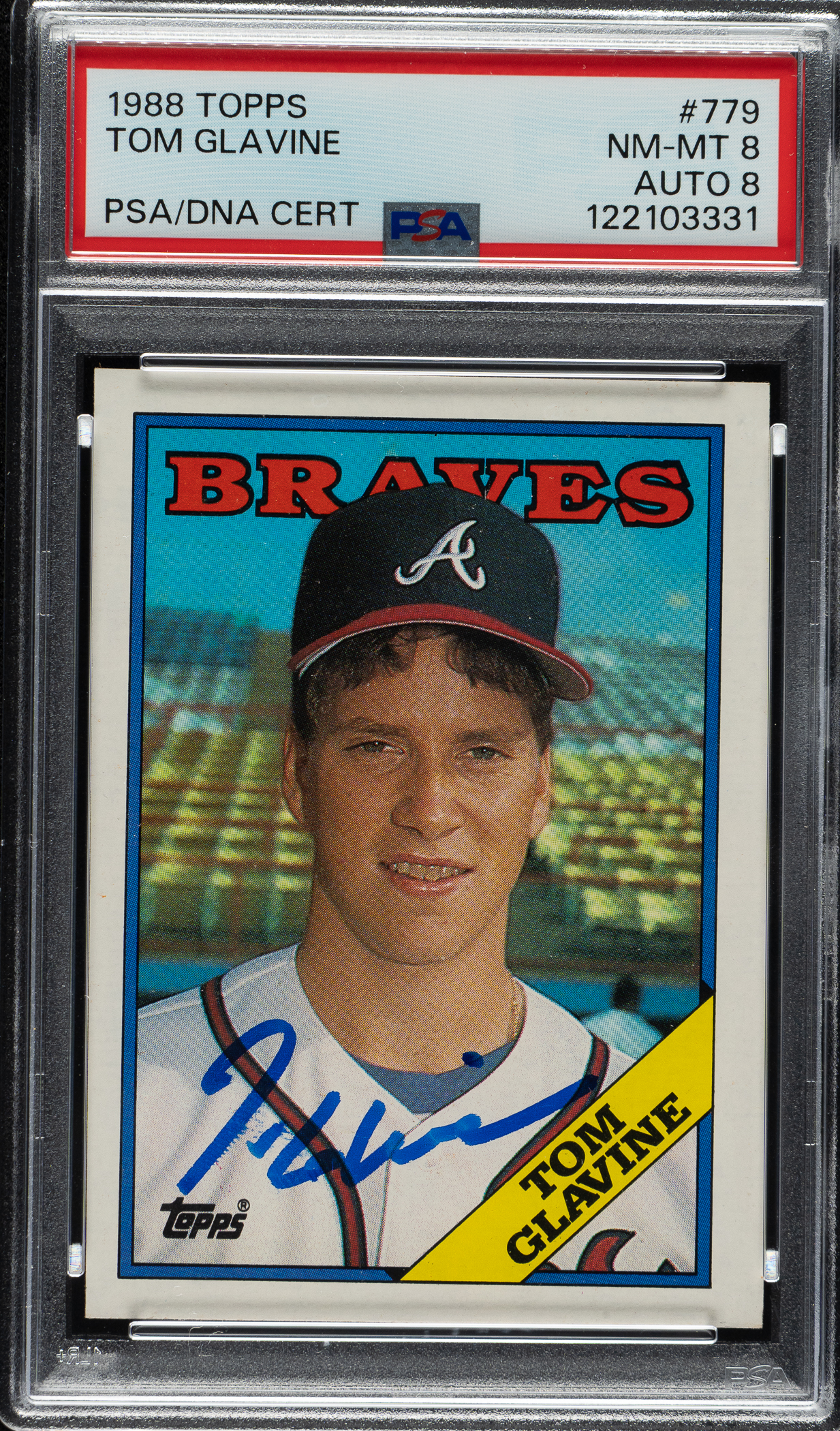 PSA/DNA has encapsulated the card, grading the signature NM-MT 8 and the card NM-MT 8. Atlanta Braves Hall of Famer Tom Glavine.