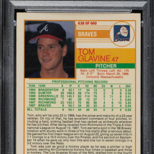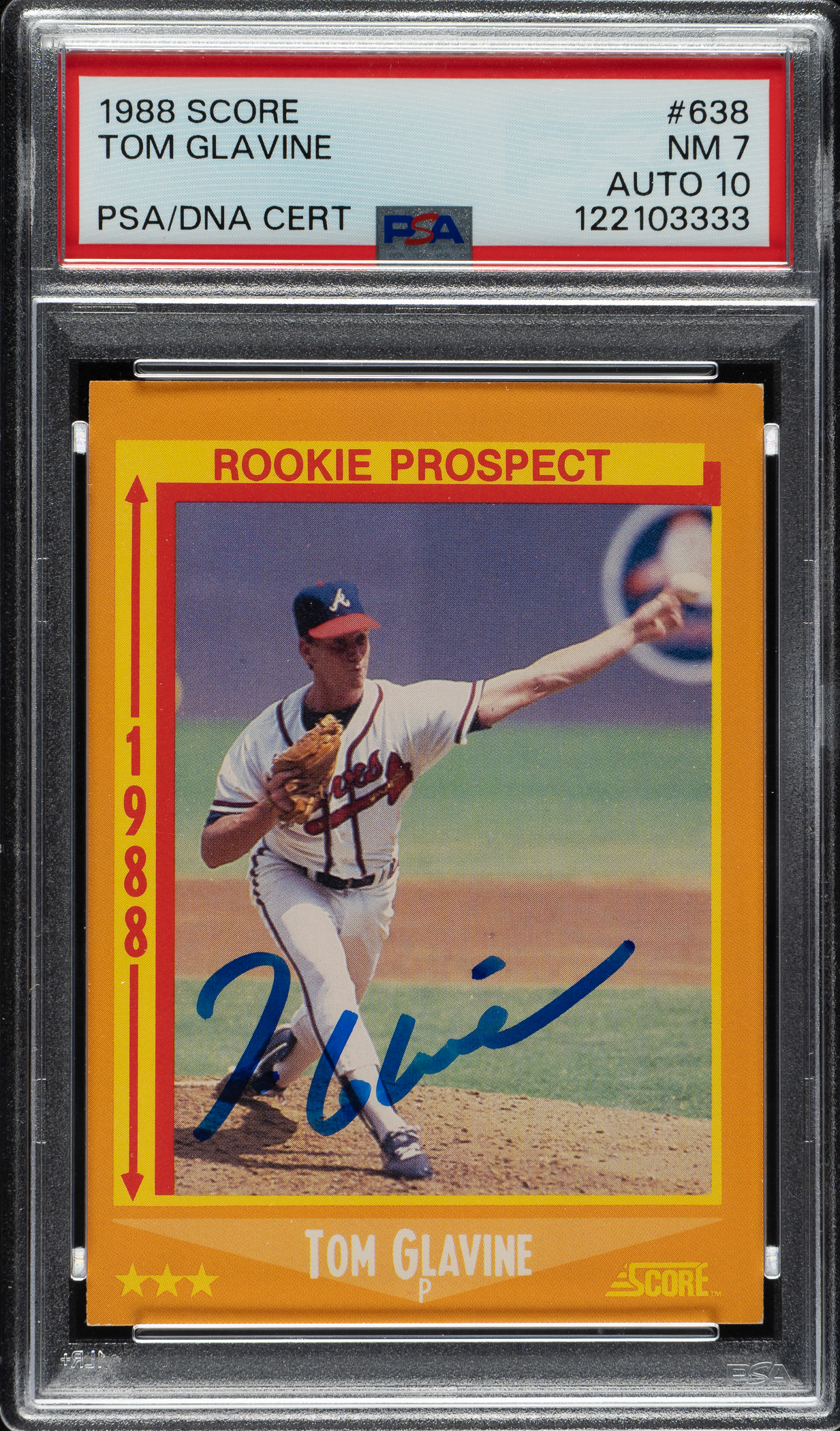 PSA/DNA has encapsulated the card, grading the signature GEM MINT 10 and the card NM 7. Atlanta Braves Hall of Famer Tom Glavine.