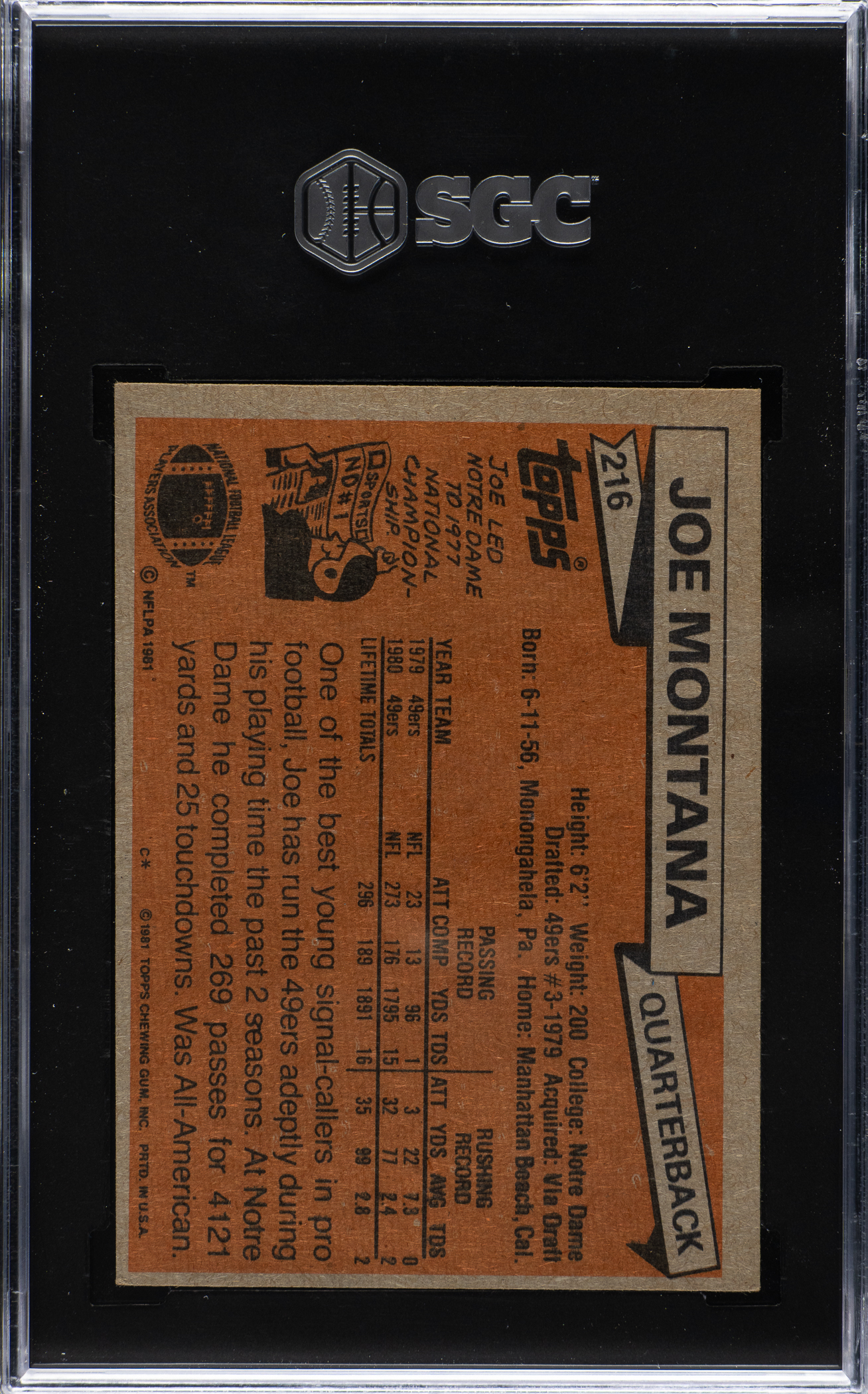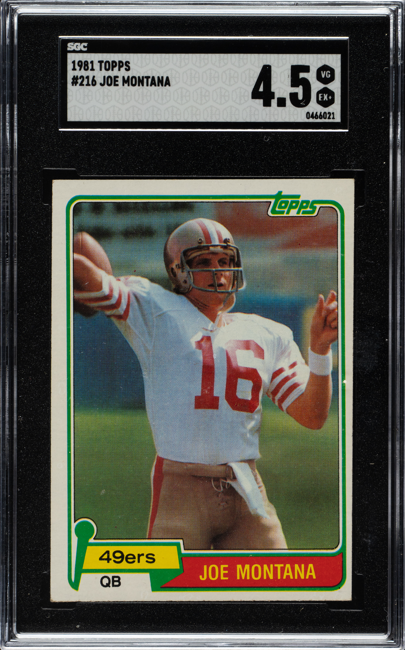 Graded VG/EX+ 4.5 by SGC. San Francisco 49ers football Hall of Famer Joe Montana.