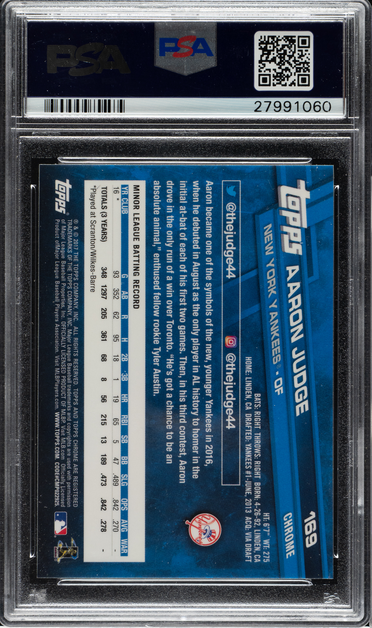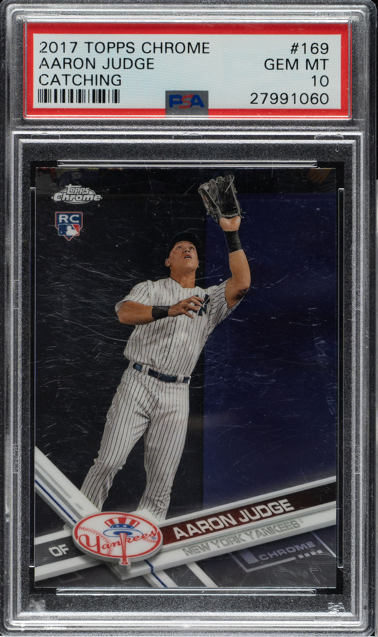 Lot # 2305: 2017 Topps Chrome #169 Aaron Judge Rookie Catching PSA GEM MINT 10