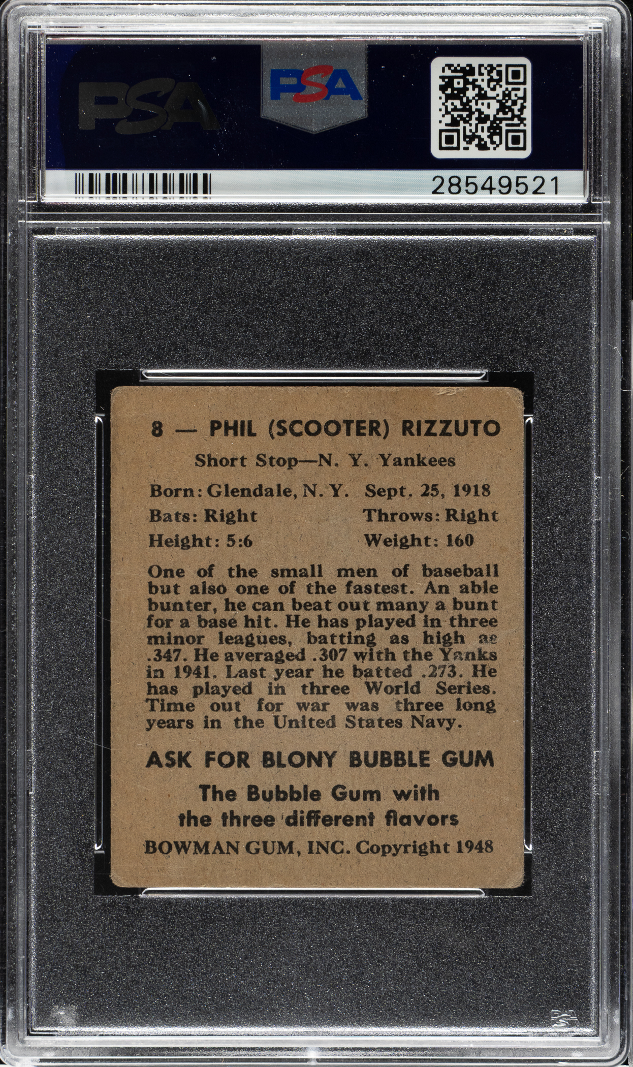 Graded VG 3 by PSA. New York Yankees Hall of Famer Phil Rizzuto.
