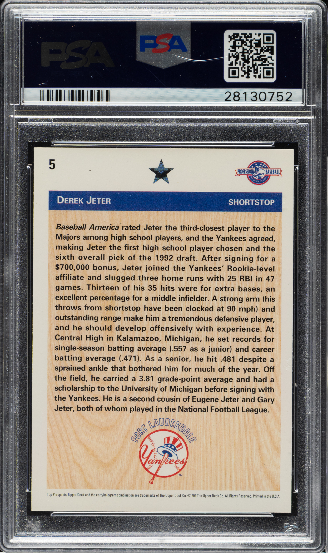 Graded GEM MINT 10 by PSA. New York Yankees Hall of Famer Derek Jeter.