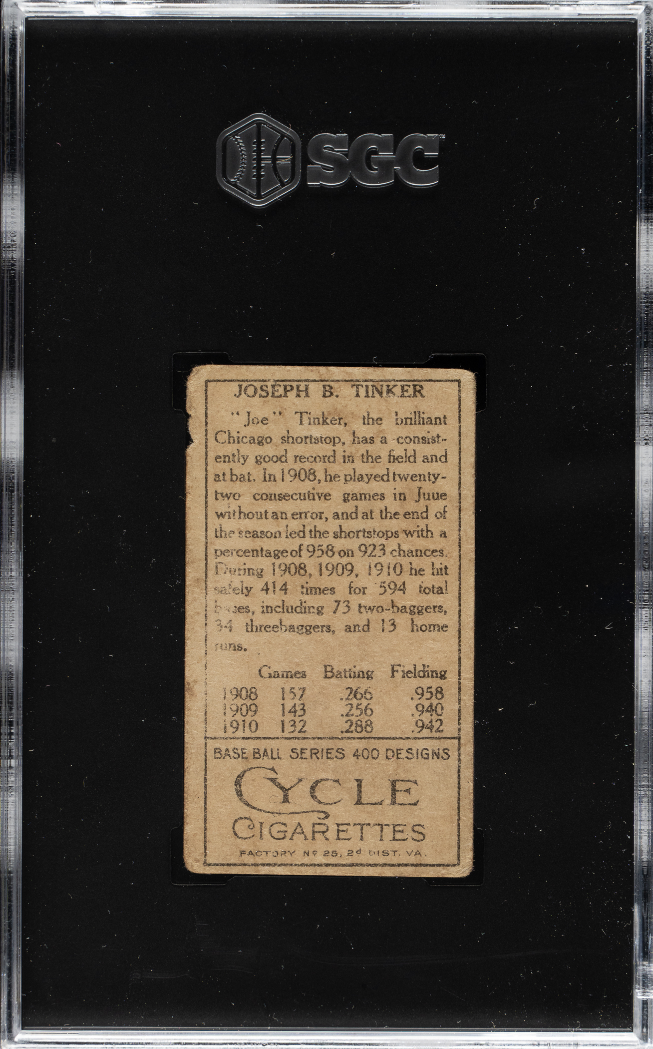 Graded FAIR 1.5 by SGC. Chicago Cubs Hall of Famer Joe Tinker.