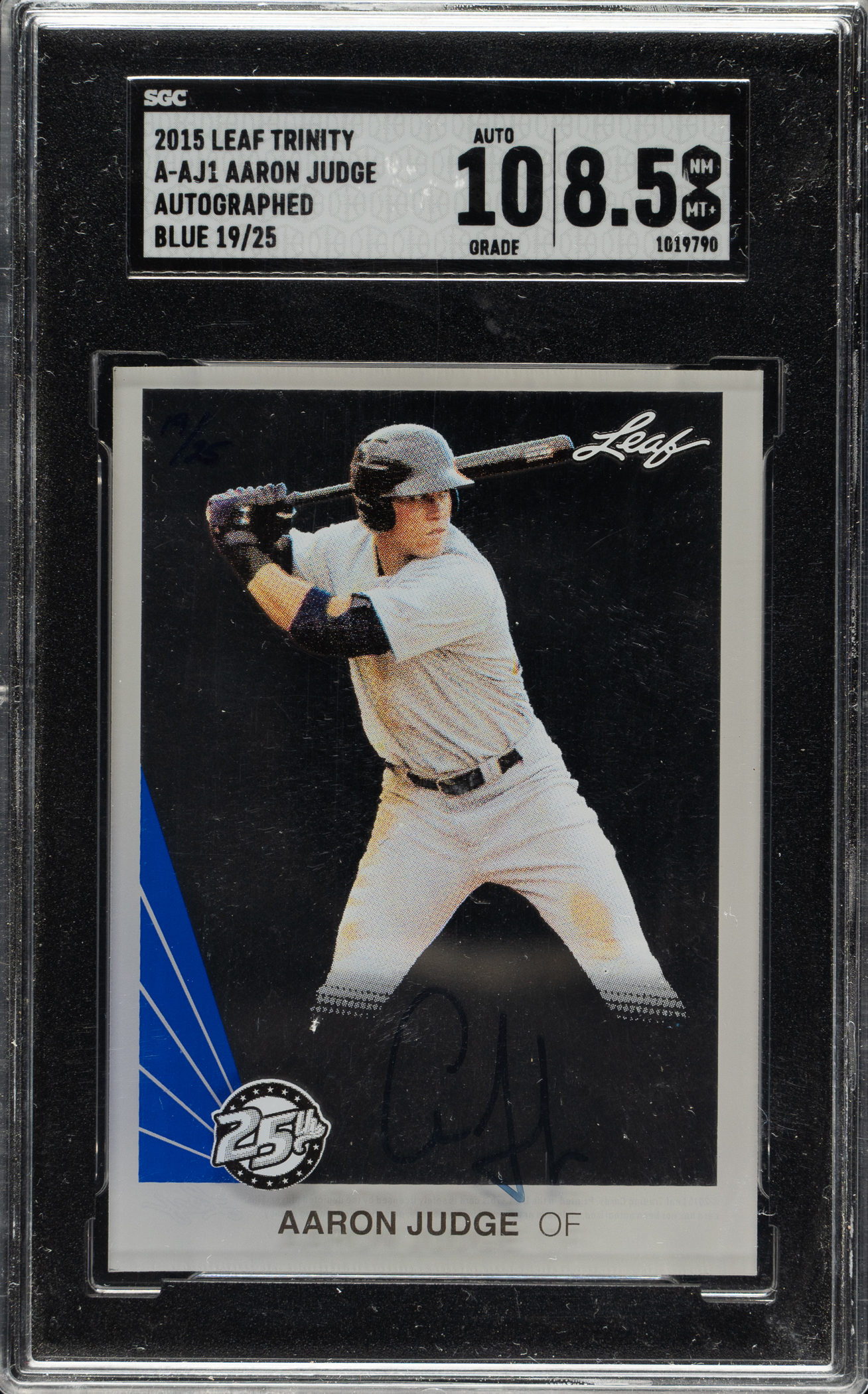 SGC has encapsulated the card, grading the signature GEM MINT 10 and the card NM/MT+ 8.5. New York Yankees.