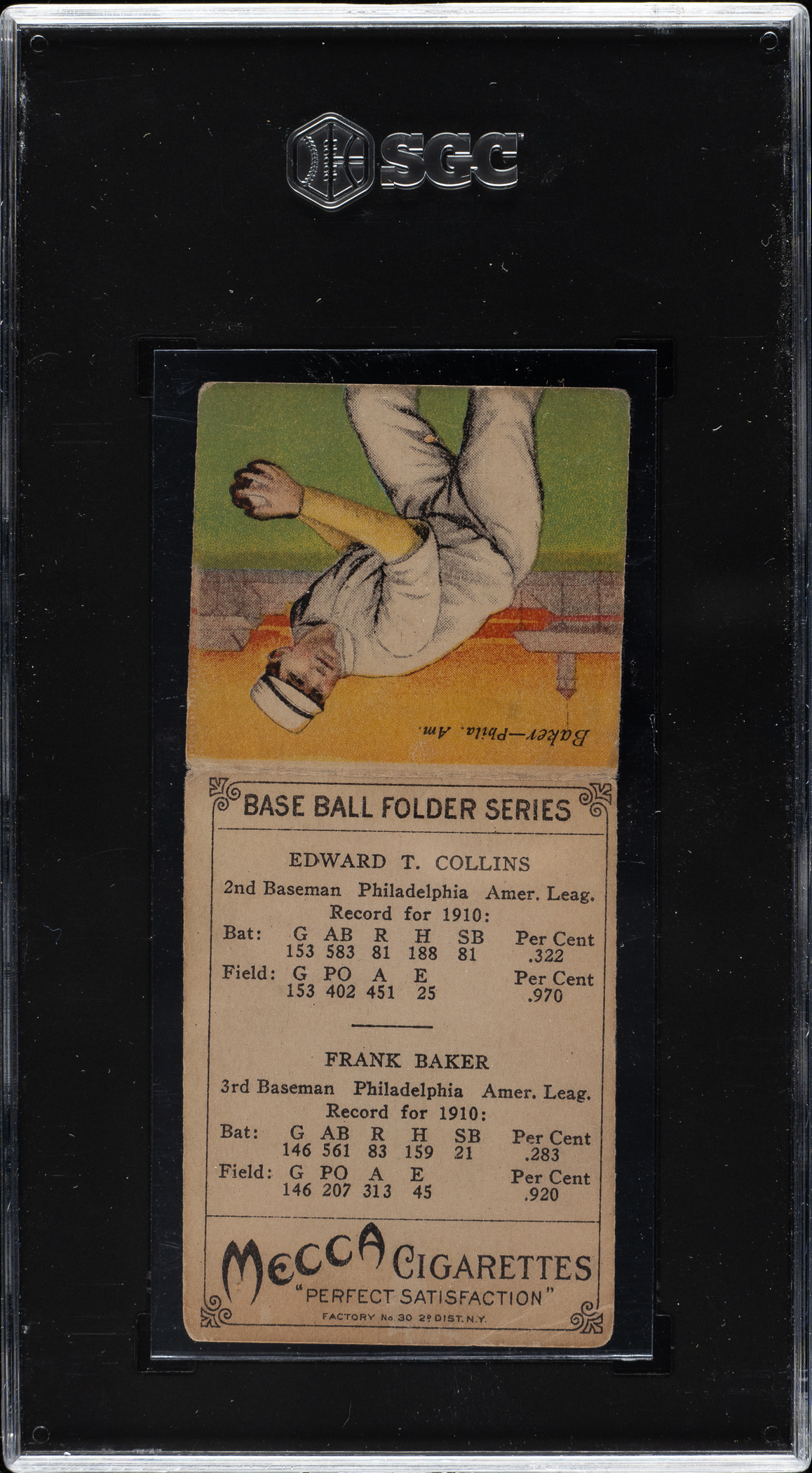 Graded GOOD+ 2.5 by SGC. Philadelphia Athletics Hall of Famer Eddie Collins and Frank Baker.