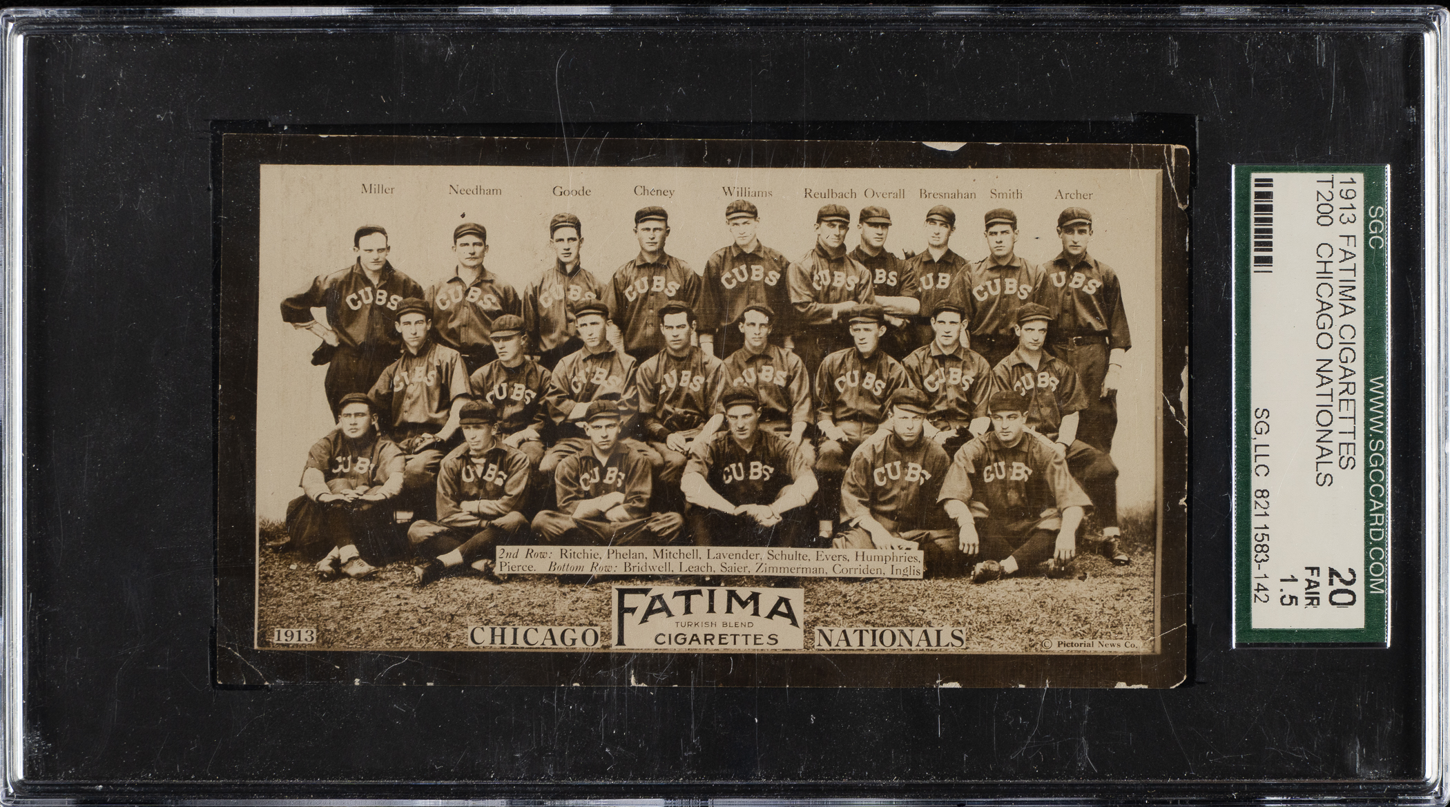 Graded FAIR 20 by SGC. Chicago Nationals Hall of Famers Roger Bresnahan and Johnny Evers.