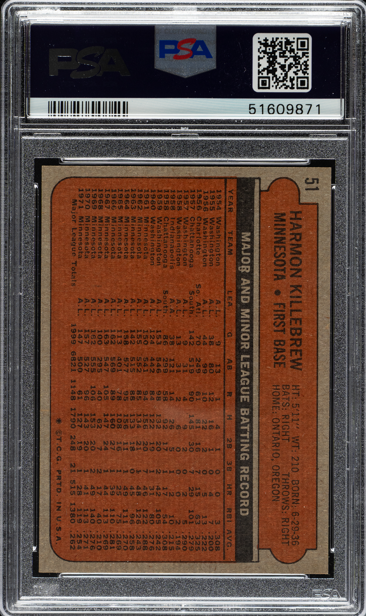 Graded GEM MINT 10 by PSA. Minnesota Twins Hall of Famer Harmon Killebrew.