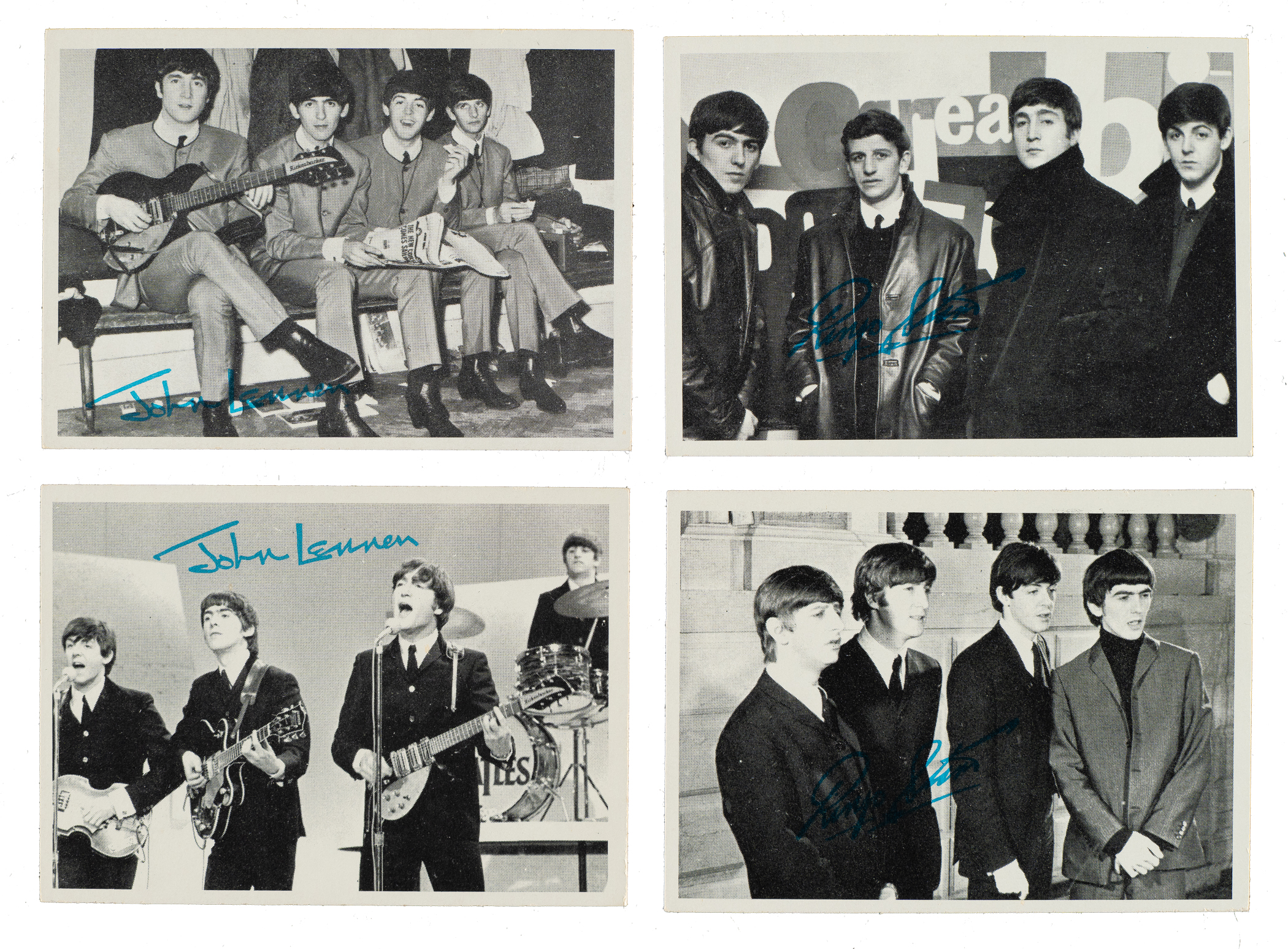 Complete 55-card set of 1964 Topps Beatles "Black & White" Second Series trading cards. The set consists of twelve orange backs and thirty-three green backs. Condition ranges from Vg-Ex to Nr/Mt (averaging Ex/Ex-Mt), with a few slightly lesser. Total: 55 cards. The size/weight of this item requires that there will be an additional shipping charge for this lot.