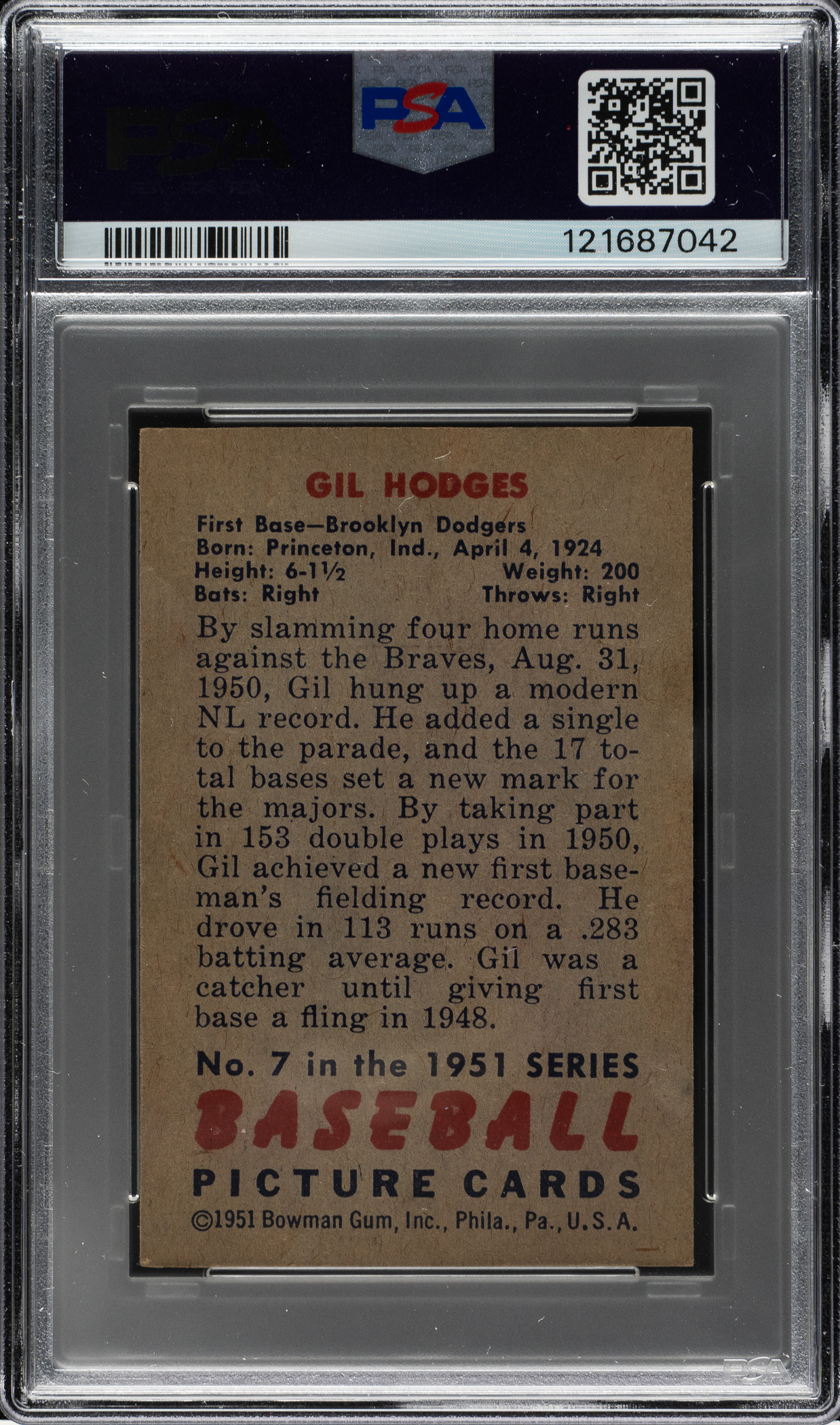 Graded NM 7 by PSA. Brooklyn Dodgers Hall of Famer Gil Hodges.