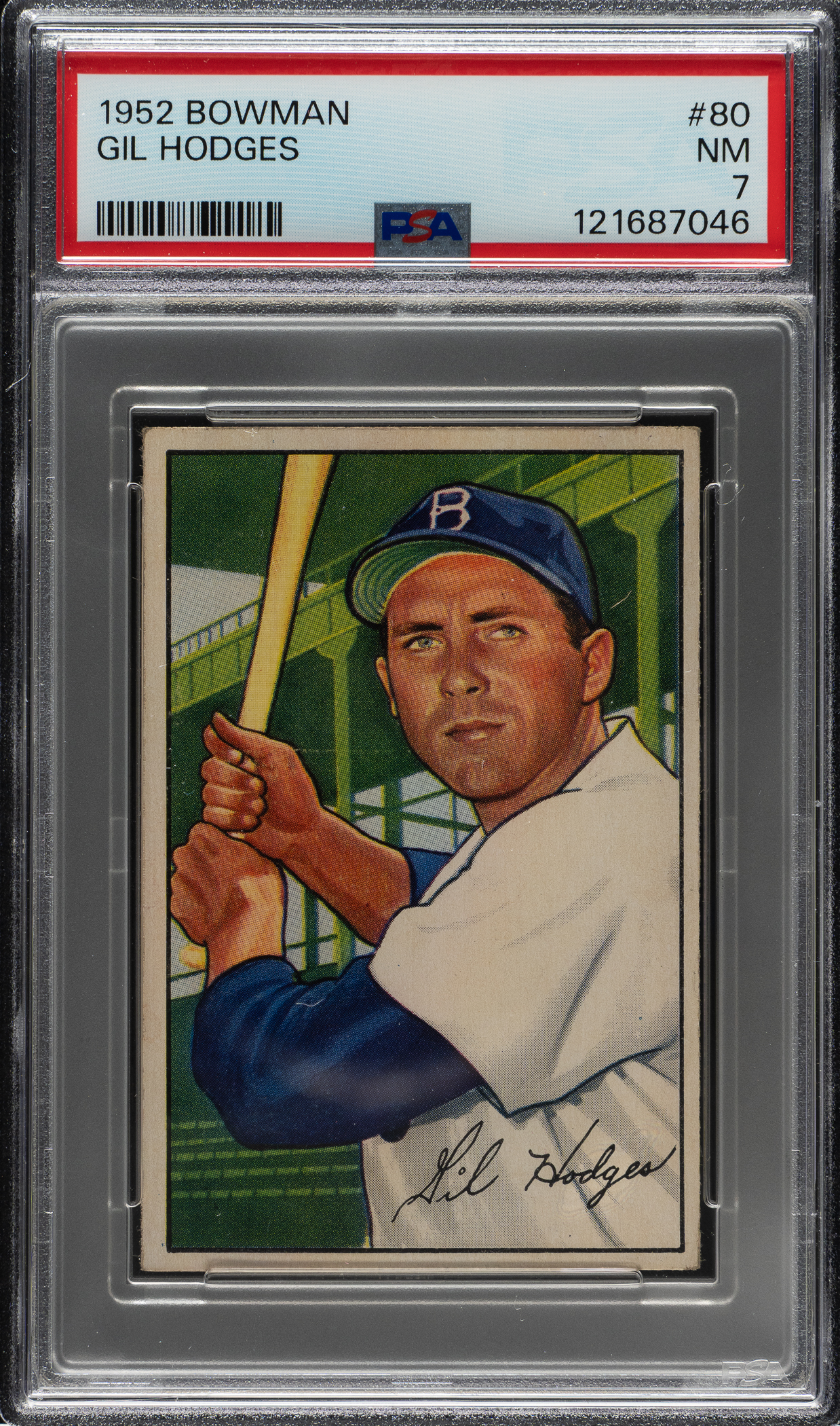 Graded NM 7 by PSA. Brooklyn Dodgers Hall of Famer Gil Hodges.