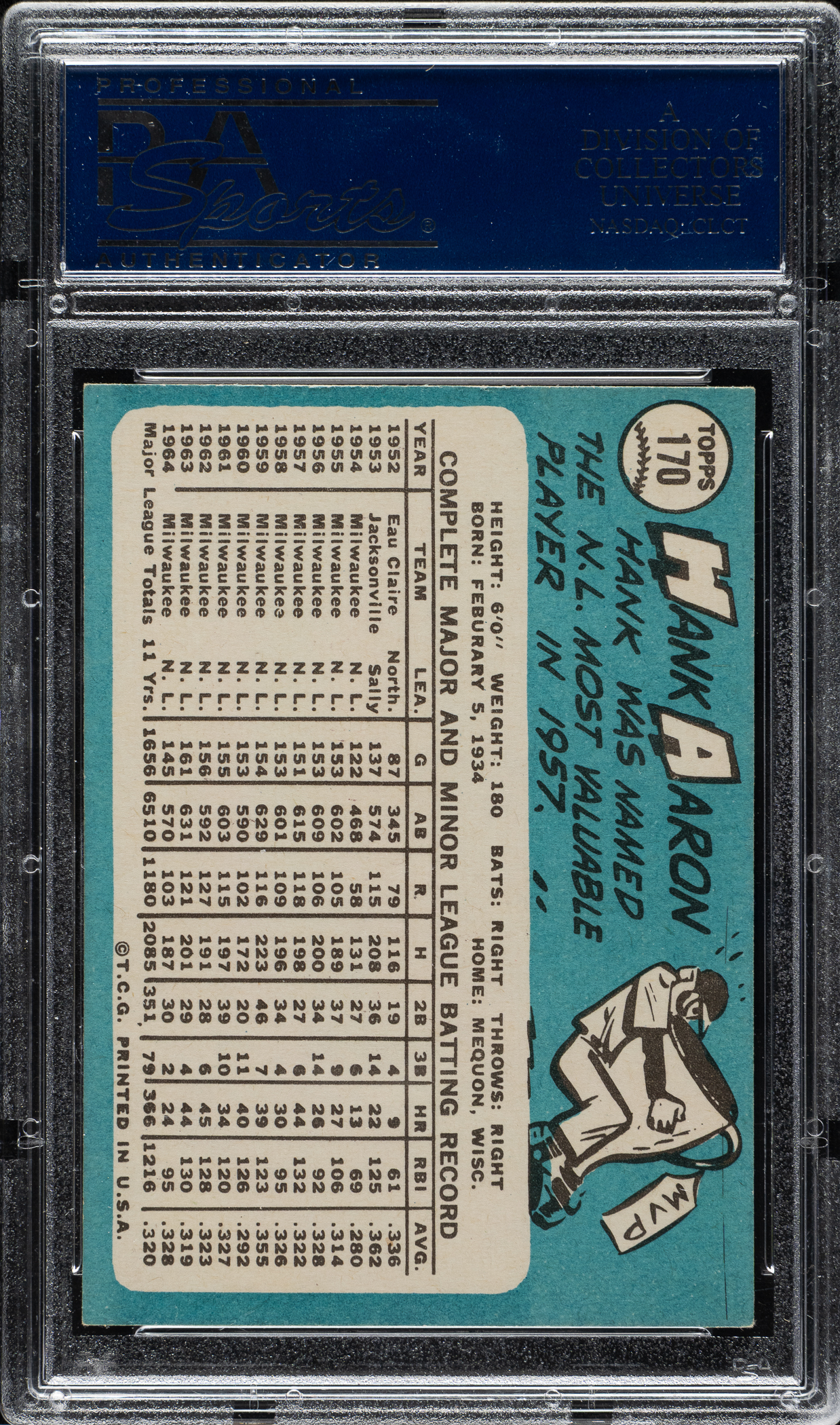 Lot # 1997: 1965 Topps #170 Hank Aaron PSA EX-MT 6