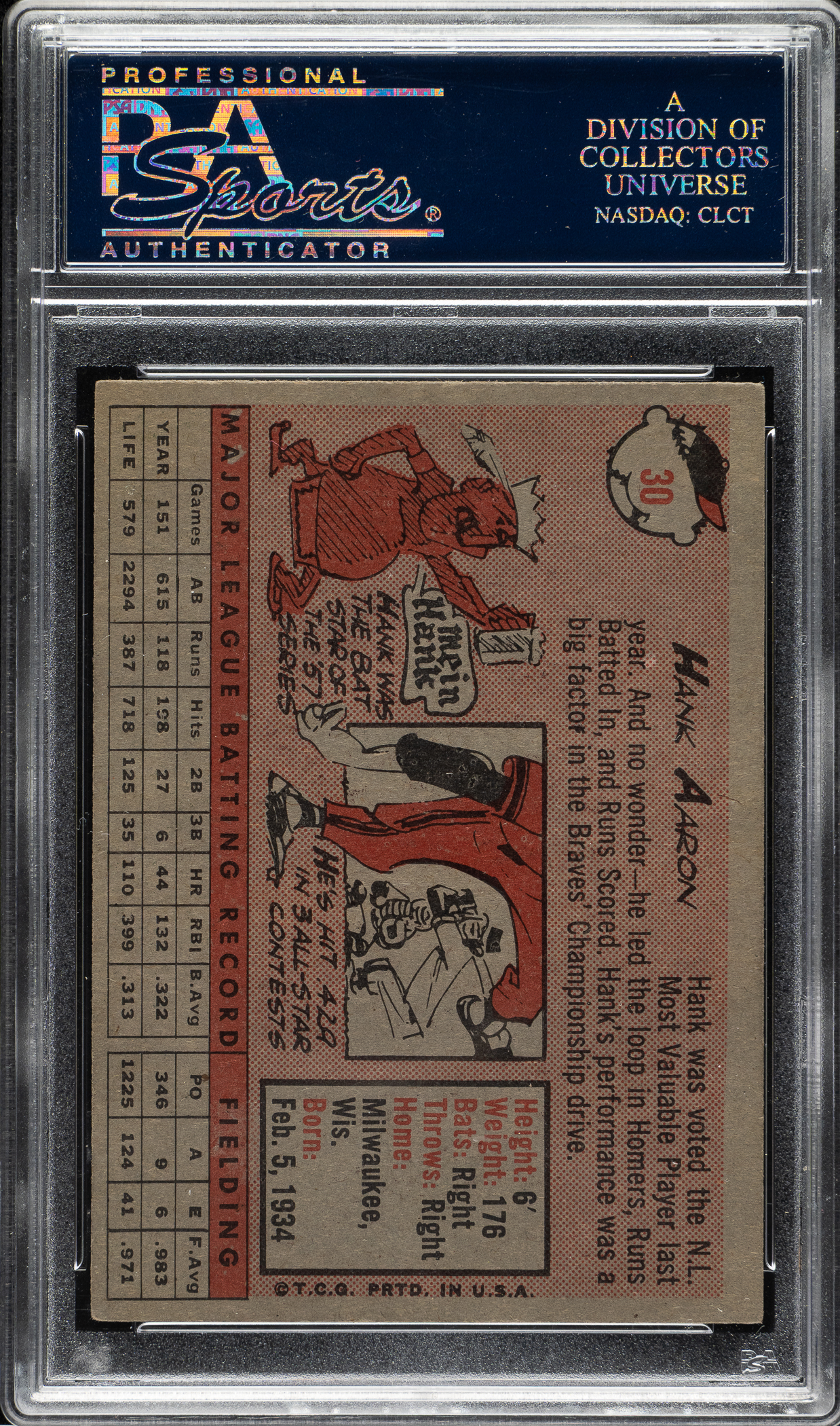 Graded VG-EX 4 by PSA. Milwaukee Braves Hall of Famer Hank Aaron.