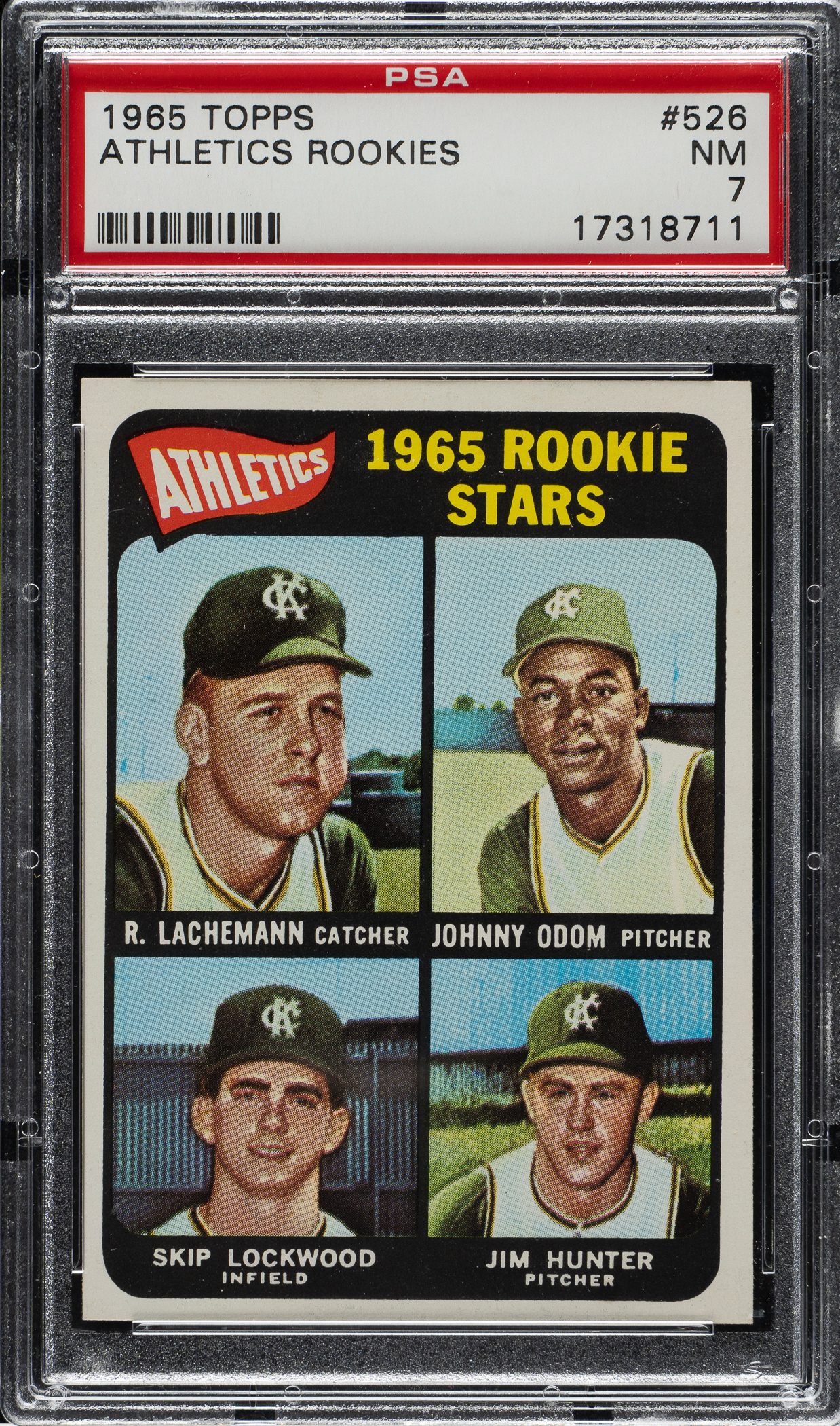 Graded NM 7 by PSA. Kansas City Athletics Hall of Famer Jim "Catfish" Hunter.