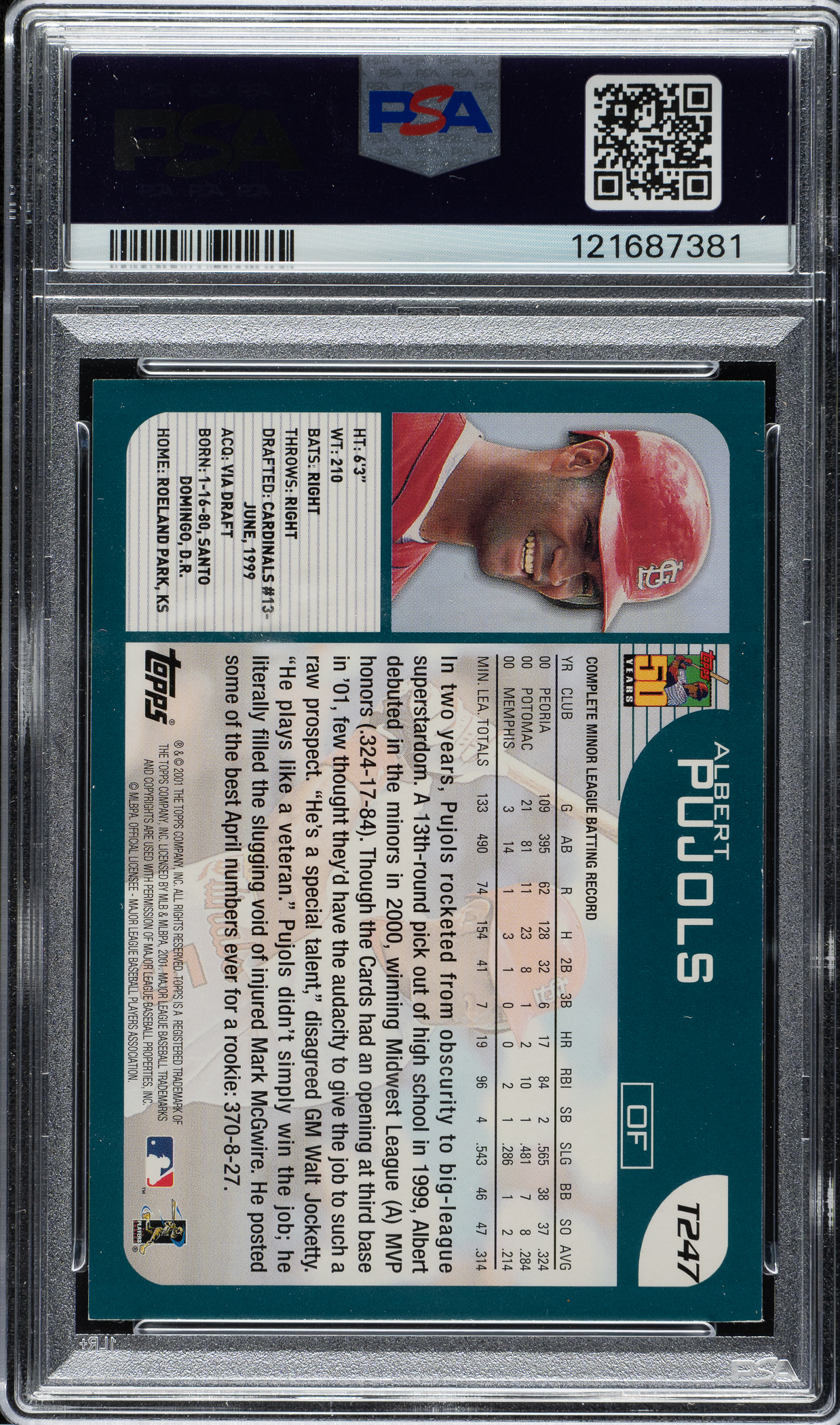 Graded NM 7 by PSA. St. Louis Cardinals.