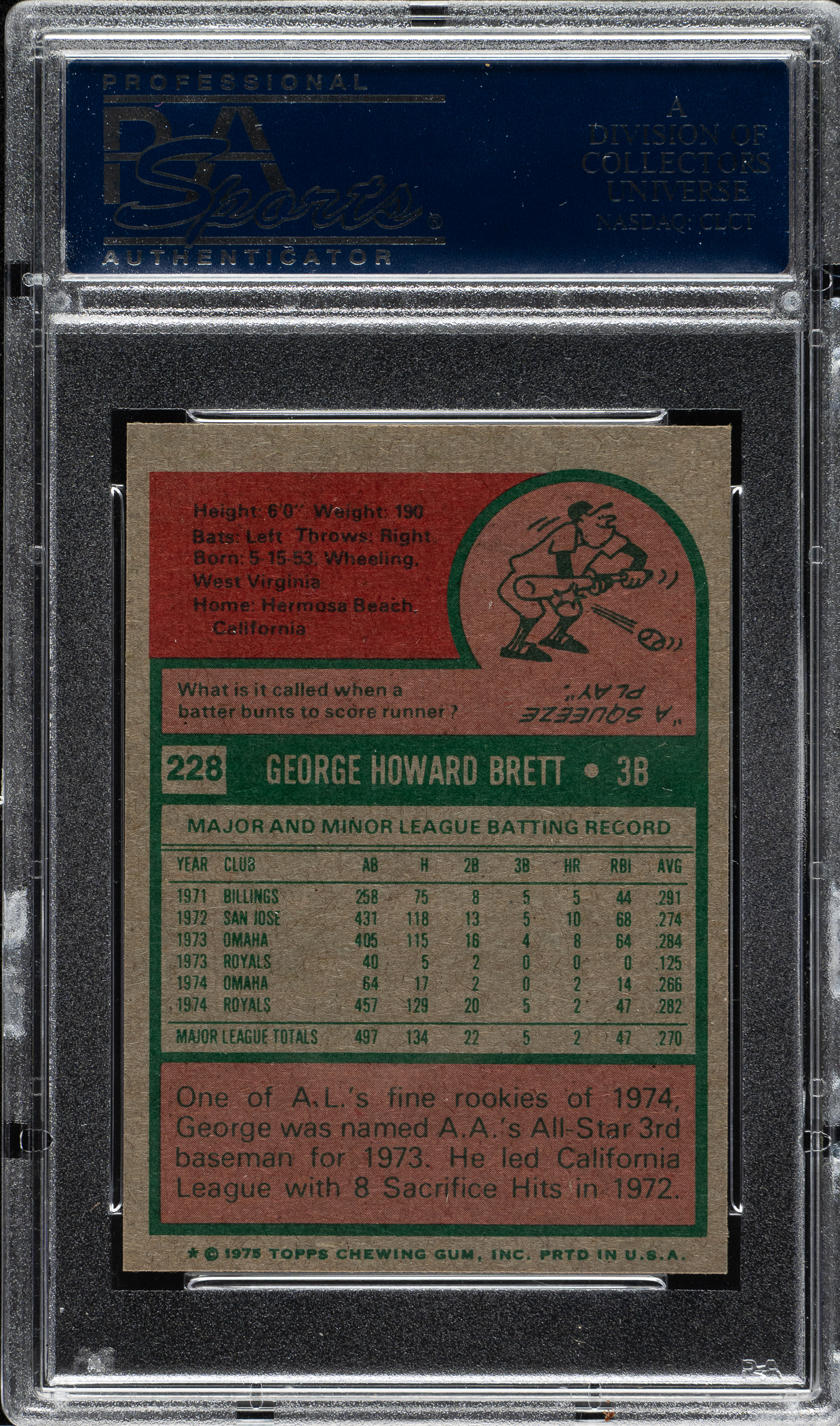 Graded NM 7 by PSA. Kansas City Royals Hall of Famer George Brett.
