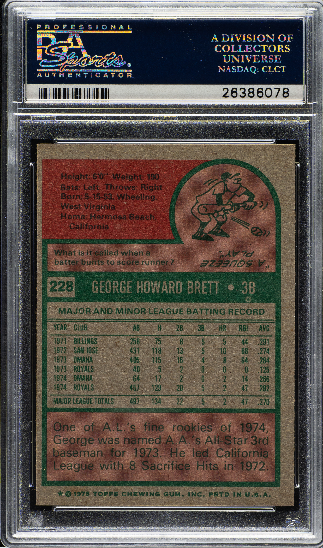 Graded NM-MT 8 by PSA. Kansas City Royals Hall of Famer George Brett.