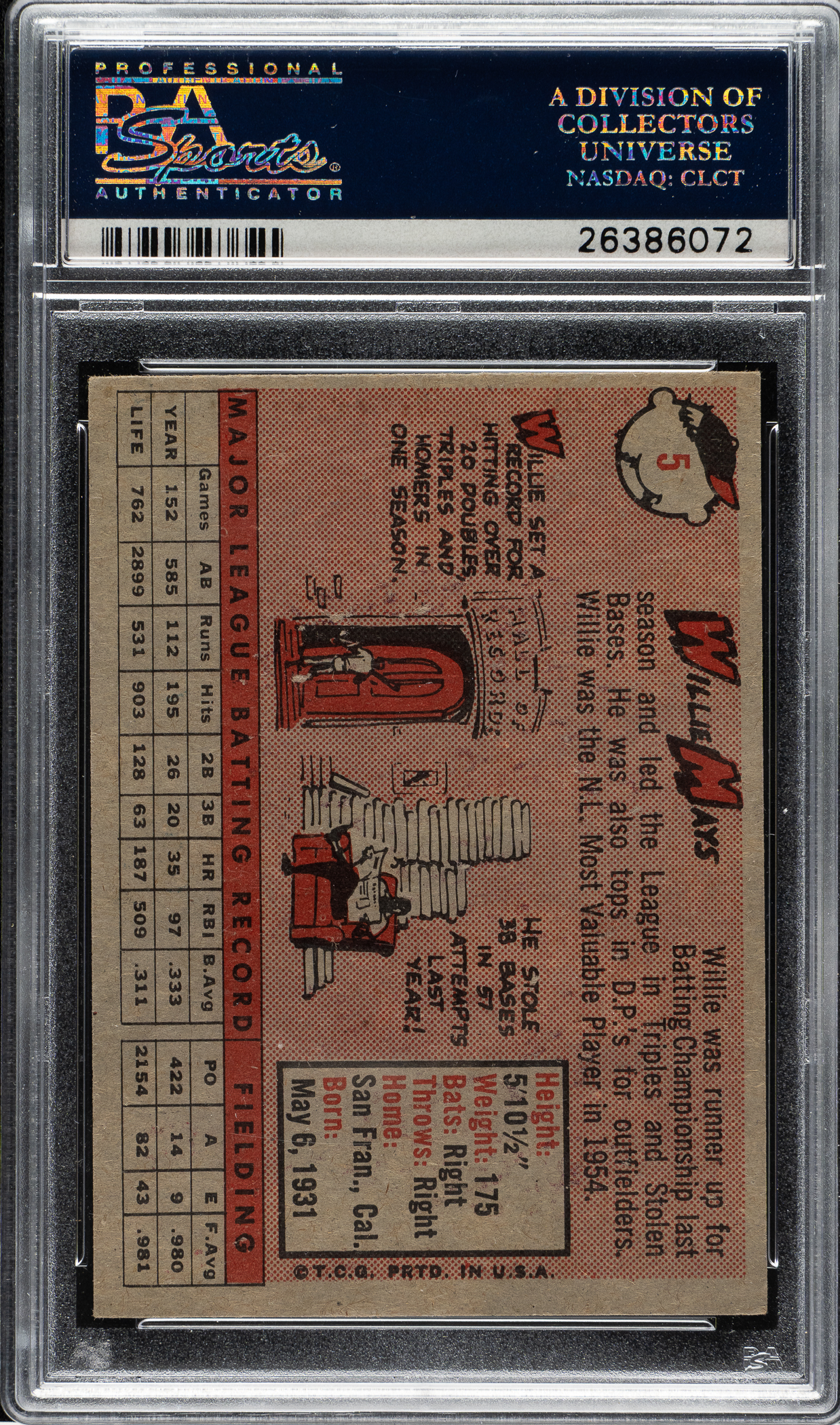 Graded EX 5 by PSA. San Francisco Giants Hall of Famer Willie Mays.