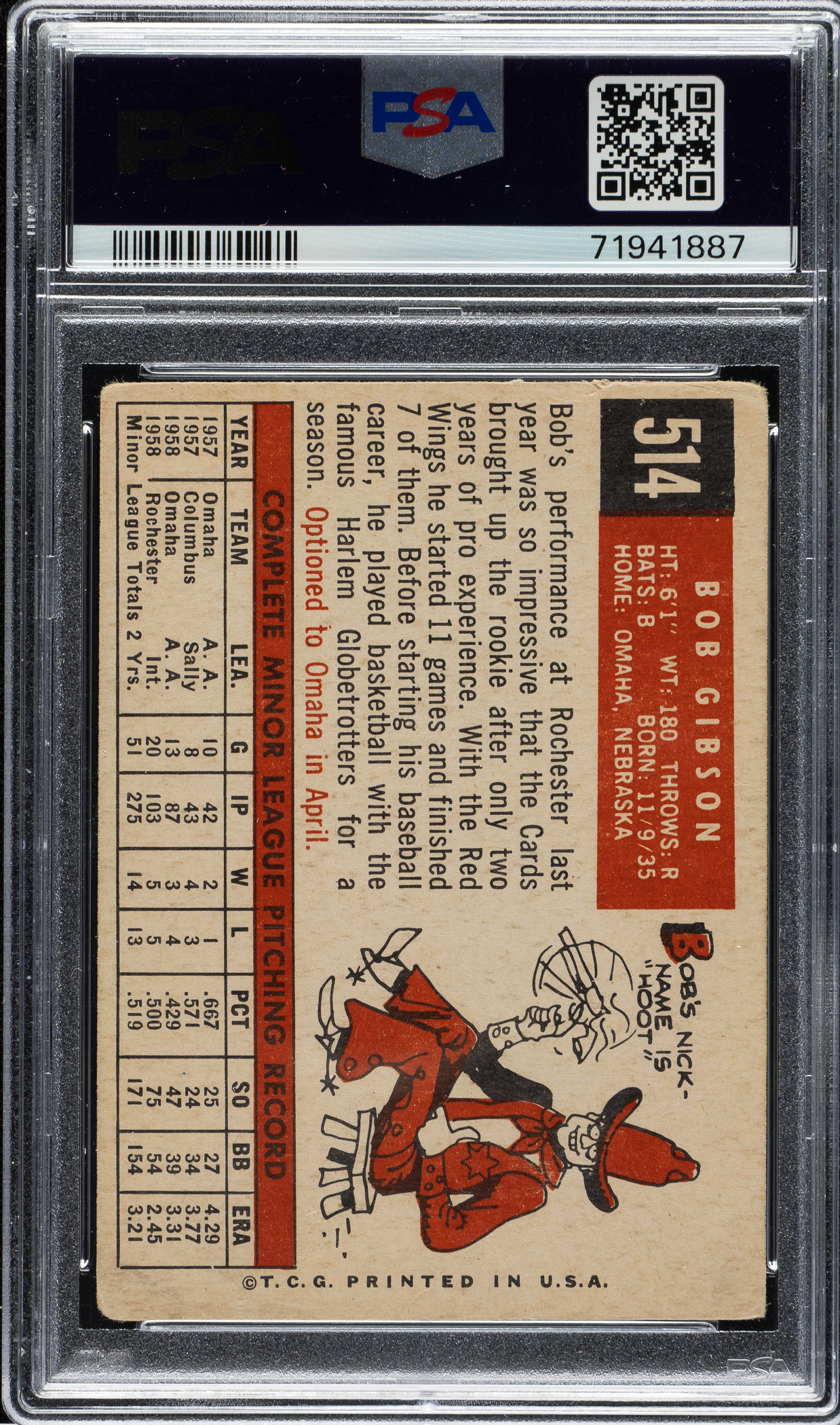 Graded POOR 1 by PSA. St. Louis Cardinals Hall of Famer Bob Gibson.