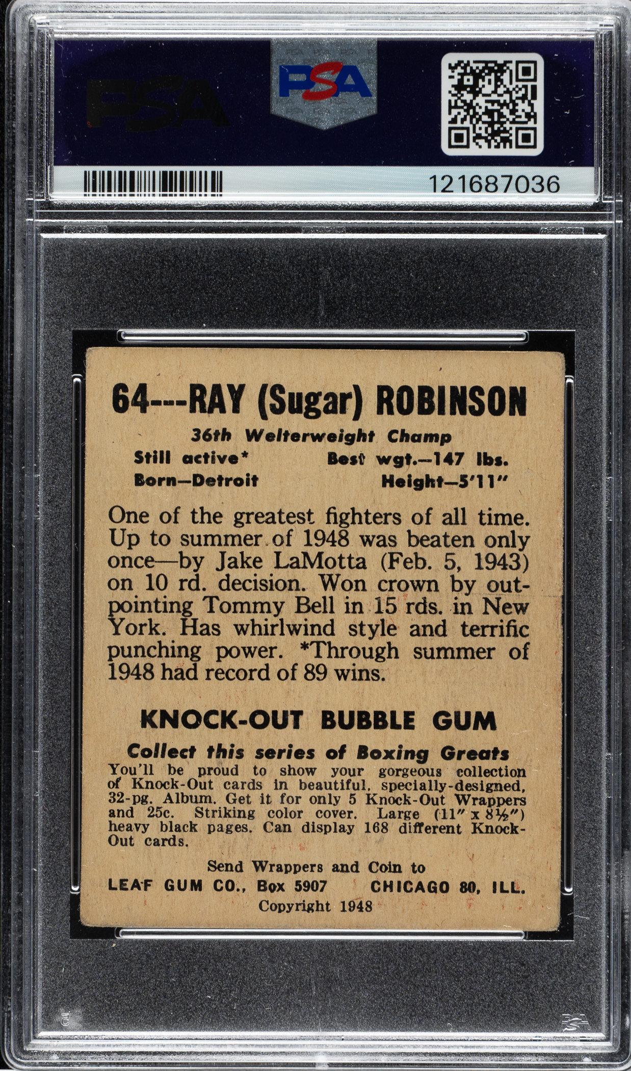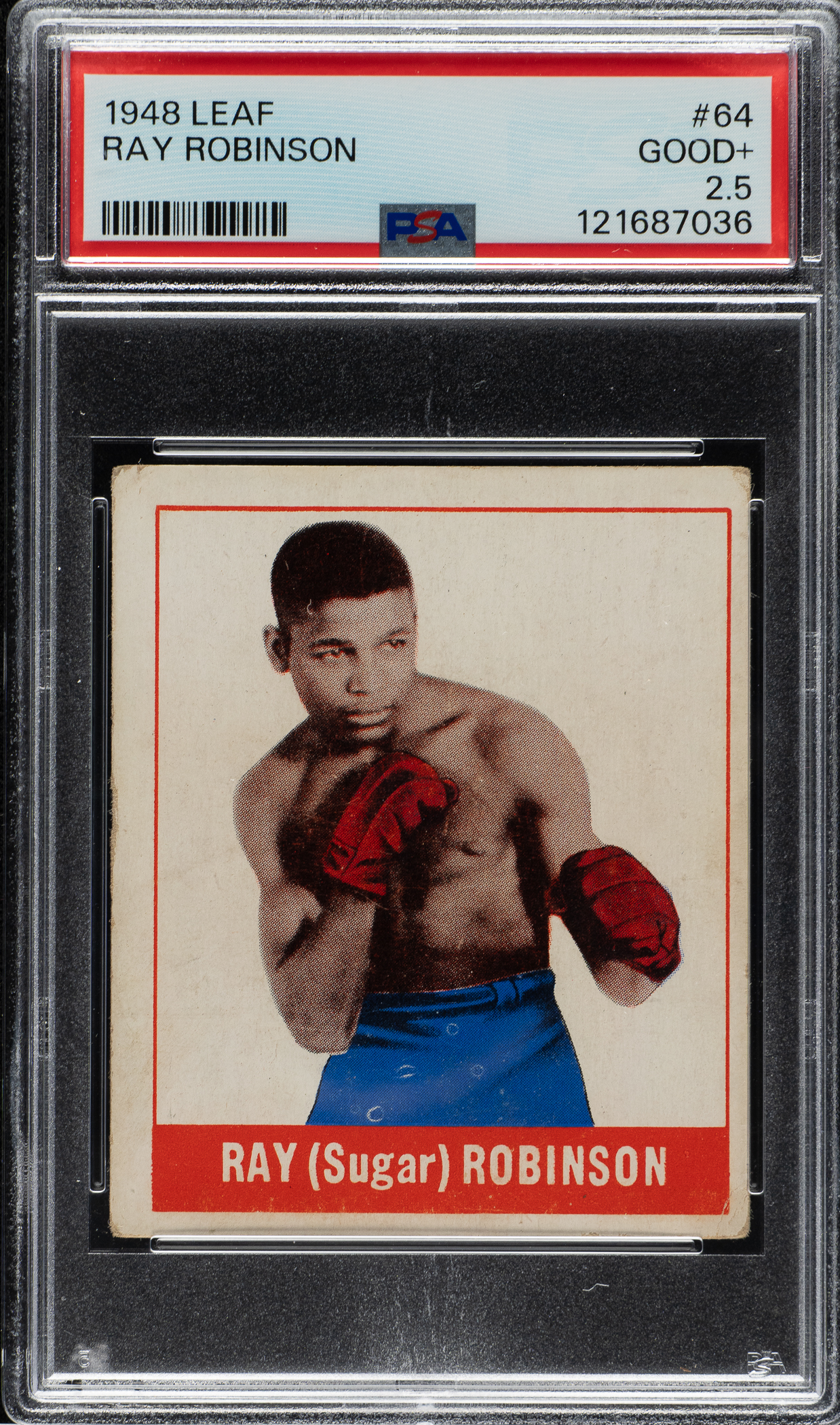 Graded GOOD+ 2.5 by PSA. Boxing Hall of Famer Ray Robinson.