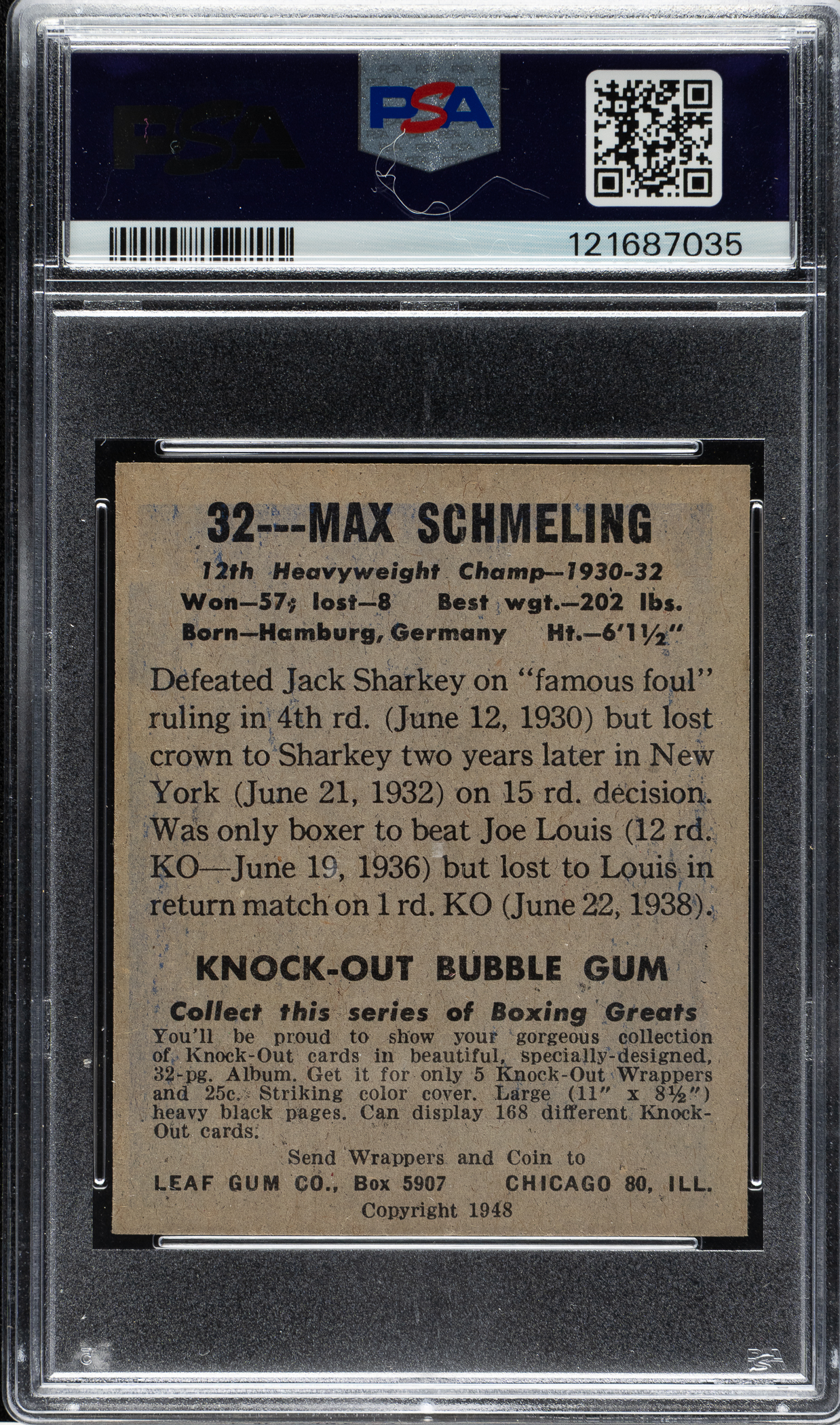 Graded EX-MT 6 by PSA. Boxing Hall of Famer Max Schmeling.