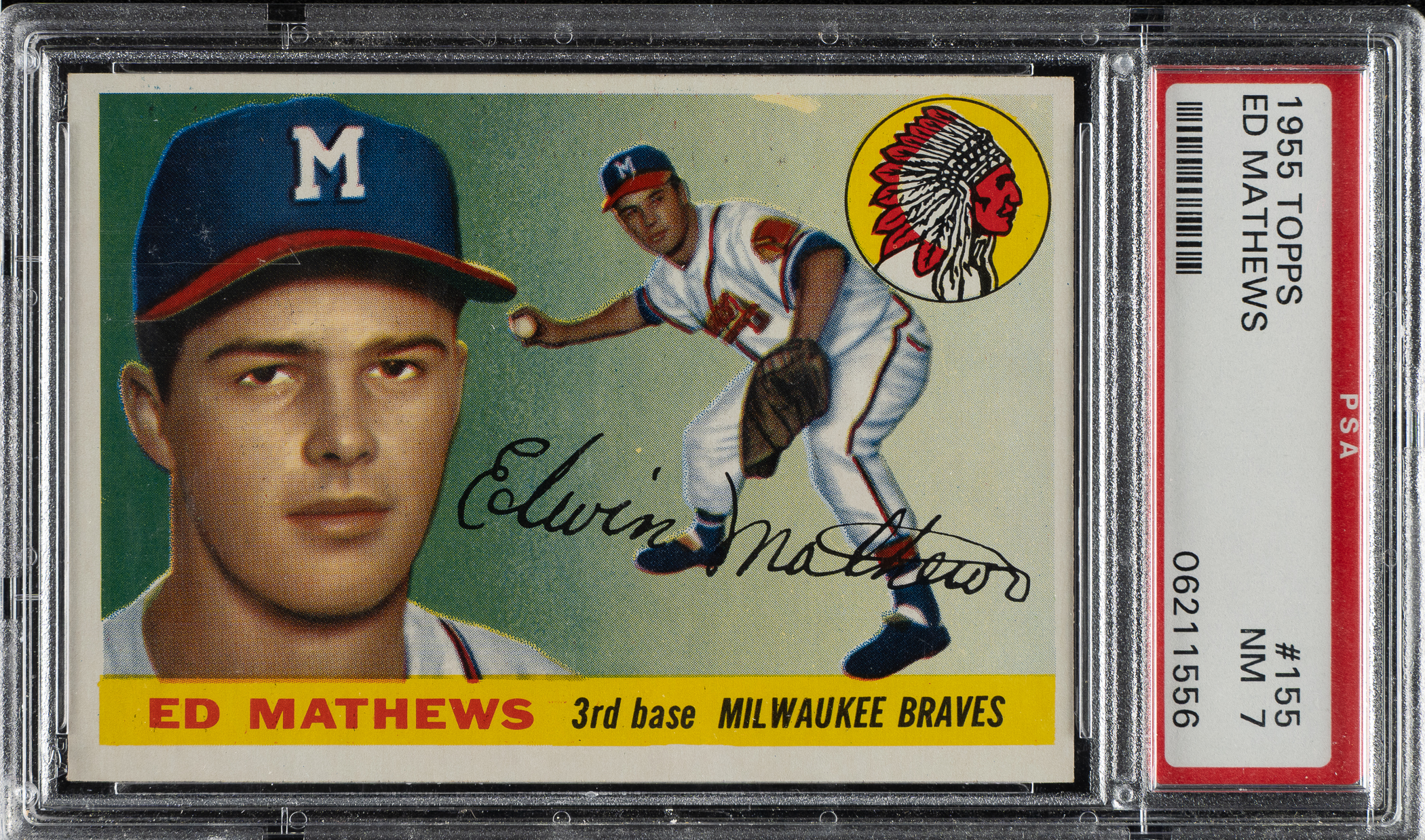Graded NM 7 by PSA. Milwaukee Braves Hall of Famer Ed Mathews.