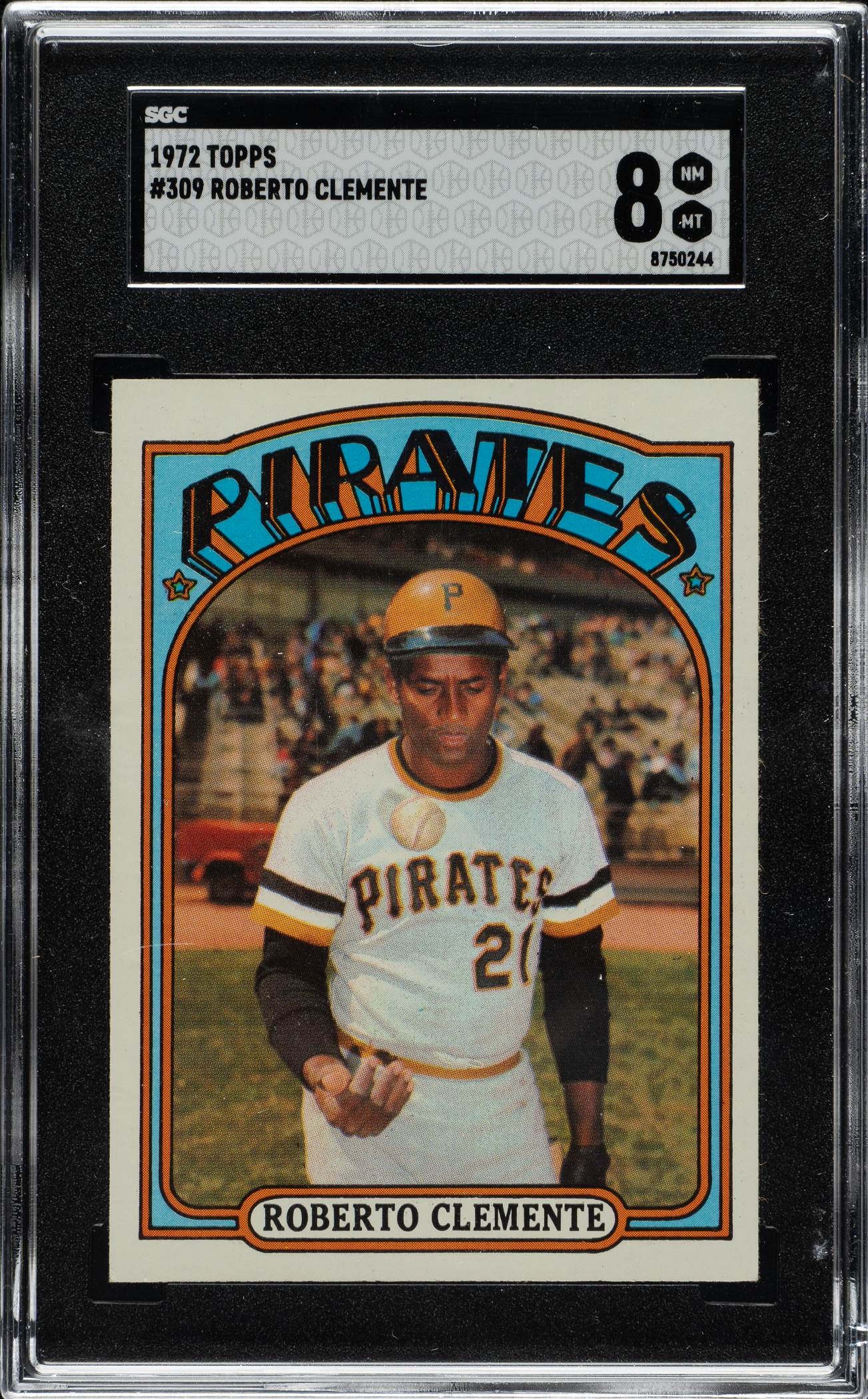 Graded NM/MT 8 by SGC. Pittsburgh Pirates Hall of Famer Roberto Clemente.