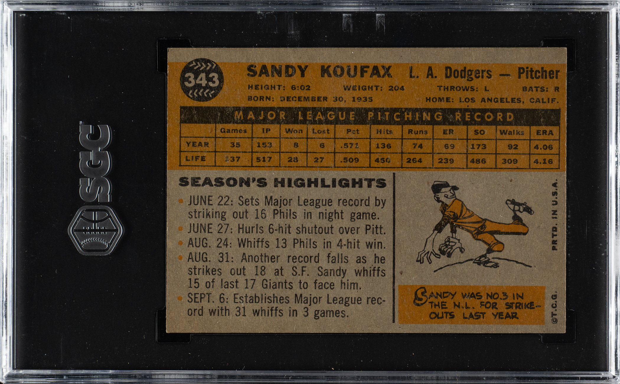 Graded VG/EX 4 by SGC. Los Angeles Dodgers Hall of Famer Sandy Koufax.