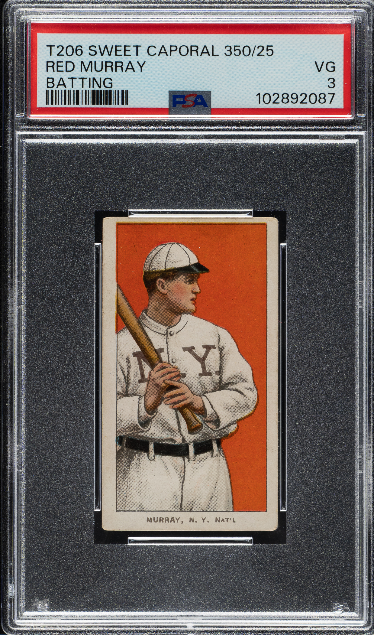Lot # 550: 1909-1911 T206 White Border Red Murray Batting PSA VG 3