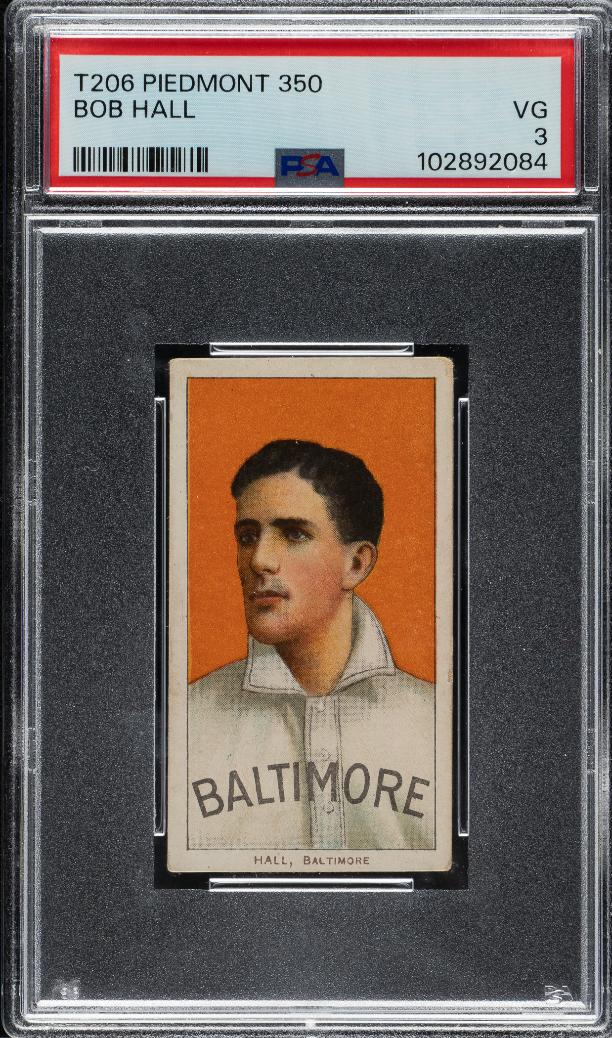 Lot # 363: 1909-1911 T206 White Border Bob Hall PSA VG 3