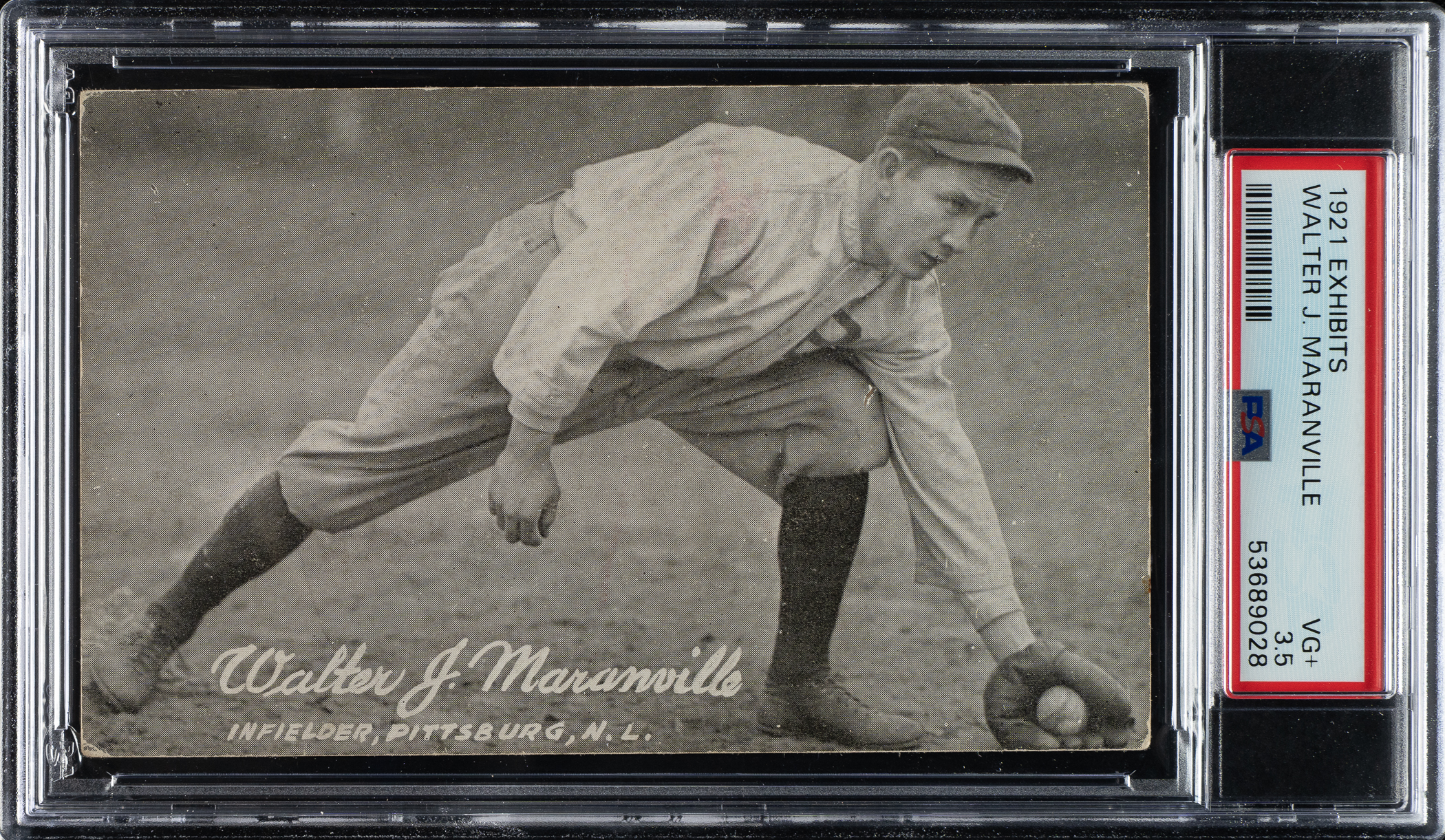 Graded VG+ 3.5 by PSA. Pittsburgh Pirates Hall of Famer Walter "Rabbit" Maranville.