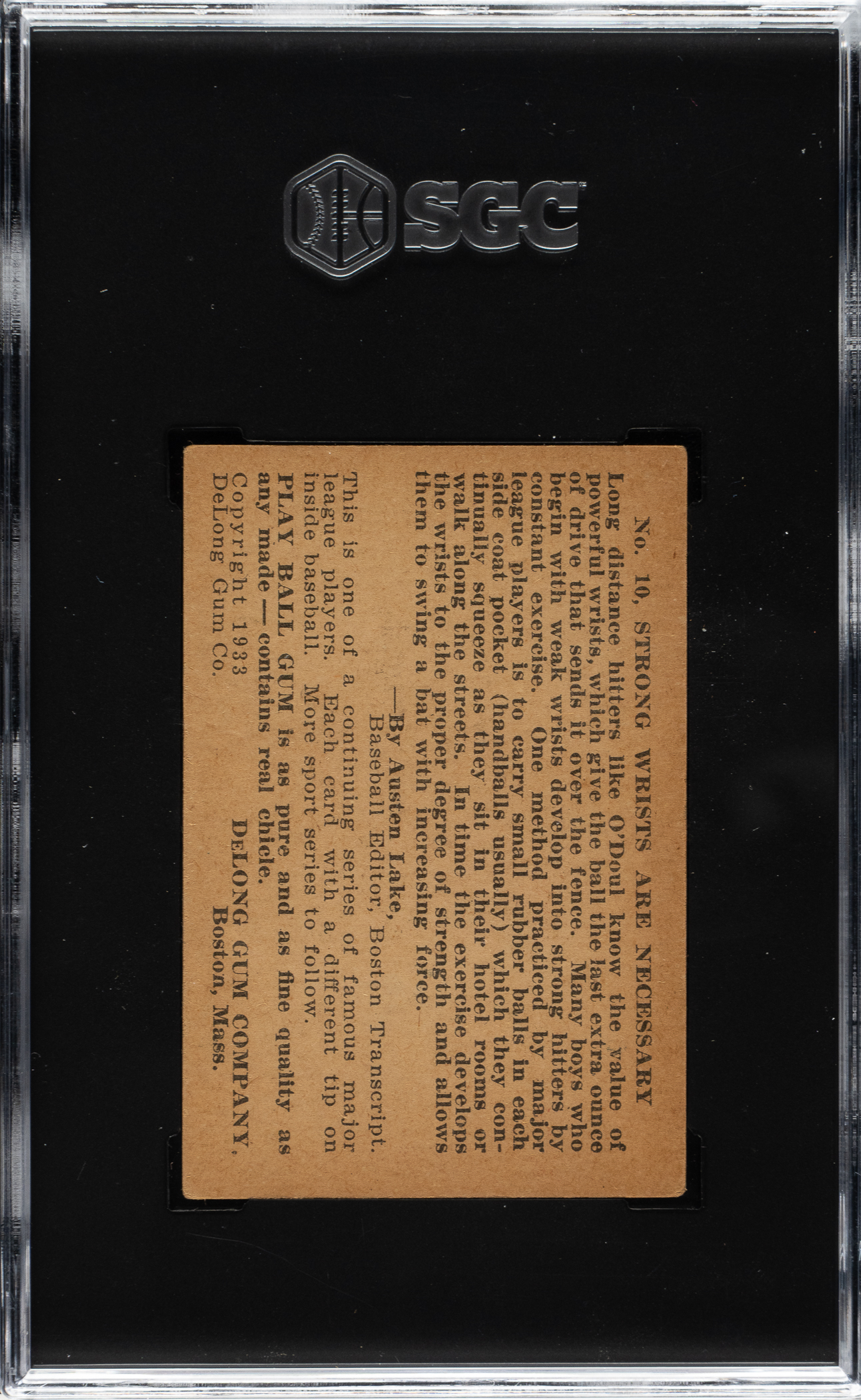 Lot # 1124: 1933 R333 DeLong Gum #10 Lefty O'Doul SGC VG/EX 4