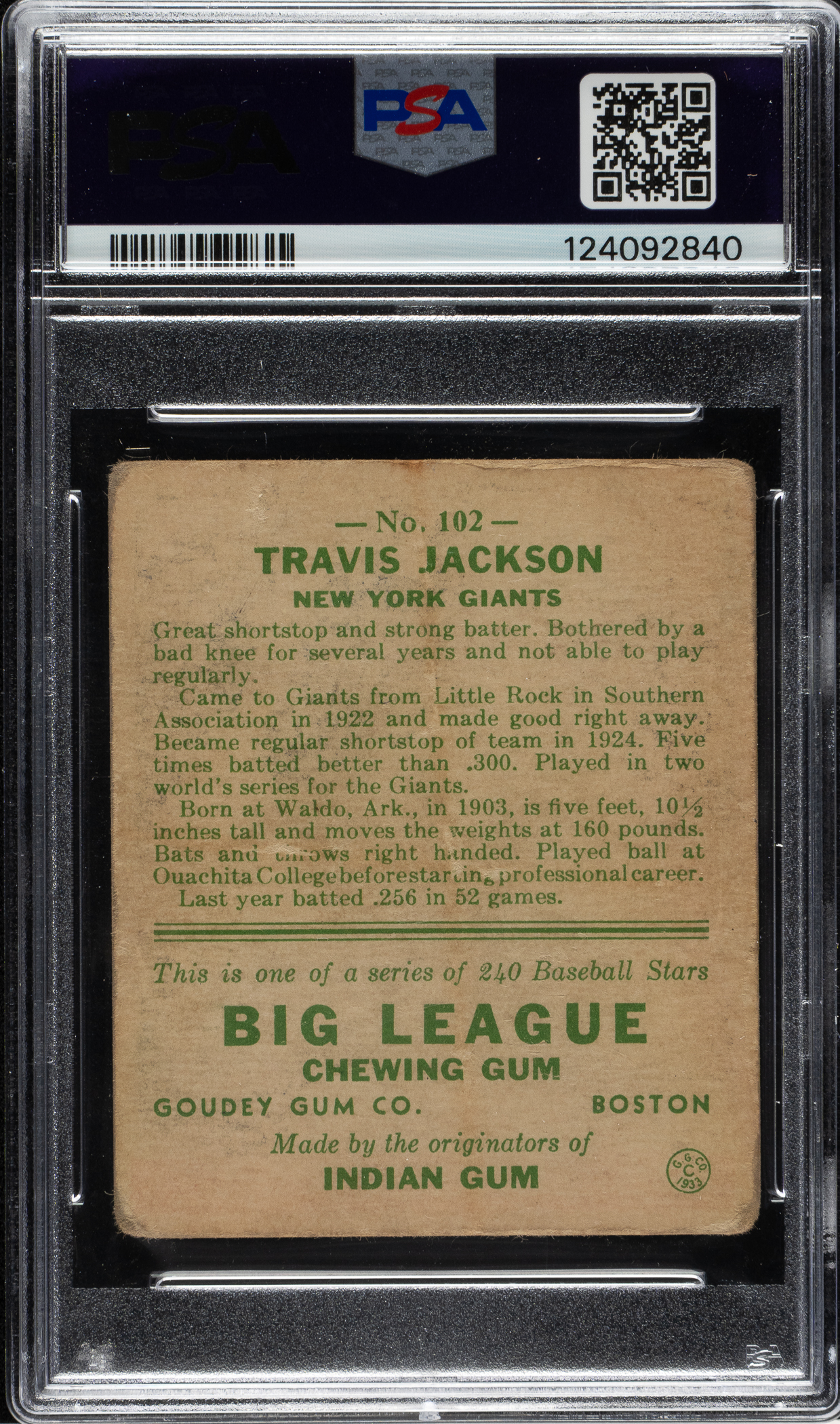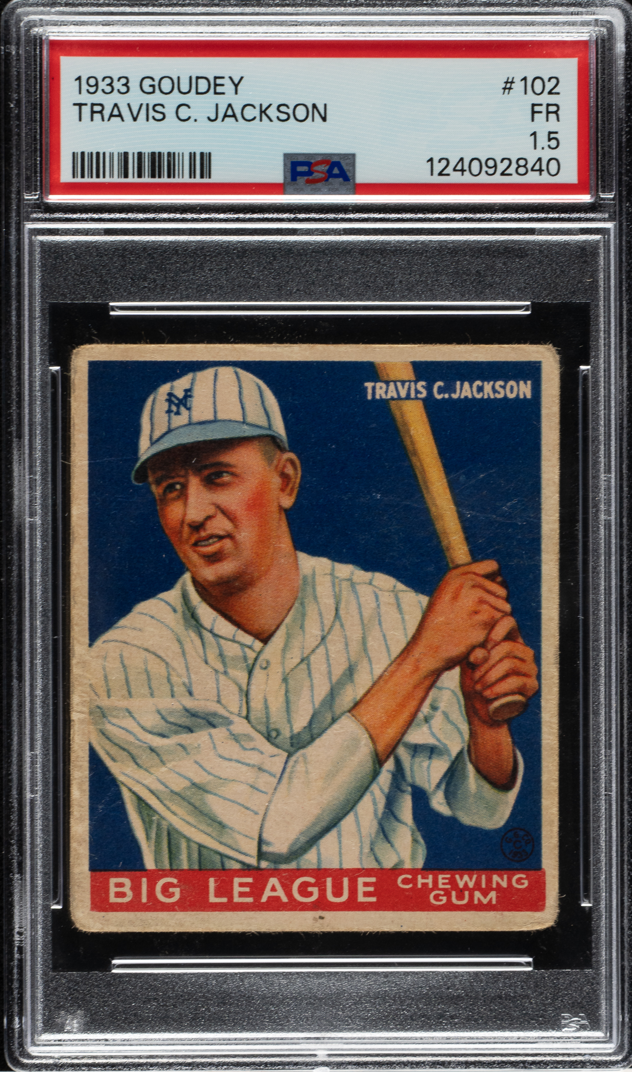 Graded FAIR 1.5 by PSA. New York Giants Hall of Famer Travis Jackson.