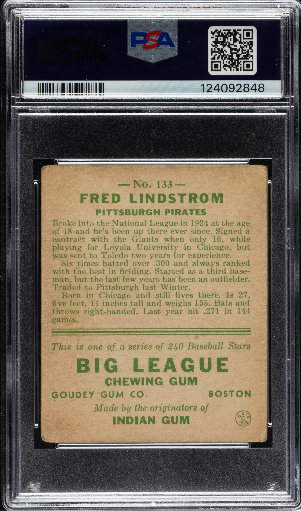 Graded GOOD 2 (MK) by PSA. Pittsburgh Pirates Hall of Famer Freddie Lindstrom.