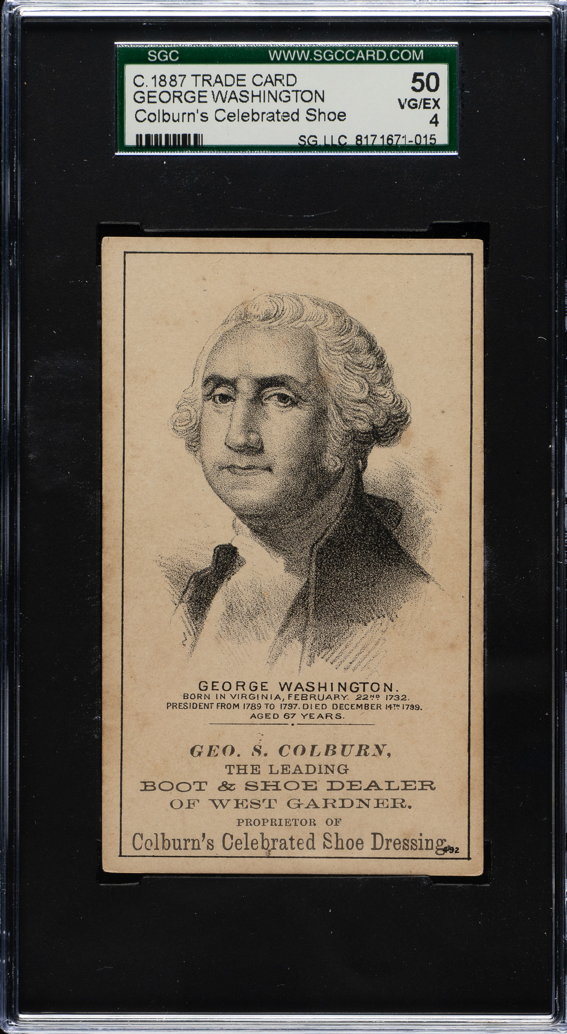 Lot 2619 Circa 1887 Blue Front SGC-Graded Trio: John Quincy Adams, Millard Fillmore, and James Monroe